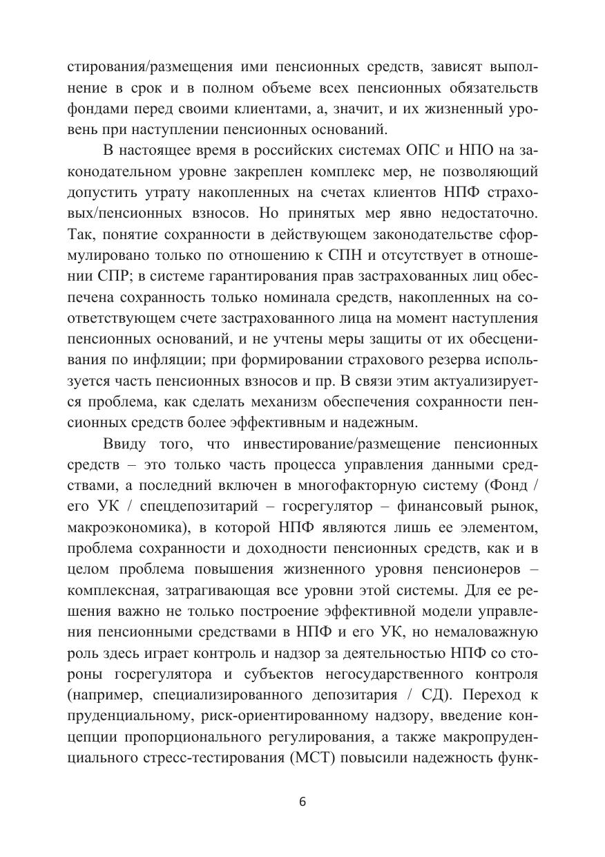 В монографии раскрываются роль и значение негосударственных пенсионных фондов в системах обязательного пенсионного страхования и негосударственного пенсионного обеспечения, исследуется влияние результатов их деятельности на повышение уровня пенсионного обеспечения граждан Российской Федерации. С этой целью в работе излагаются теоретико-методологические основы изучения темы, а именно : выделяются базисные парадигмы, уточняется категориально-понятийный аппарат, анализируется и обобщается зарубежный опыт. Особое внимание уделено мониторингу текущего состояния деятельности российских негосударственных пенсионных фондов, выявлению существующих проблем и предложениям по их решению.