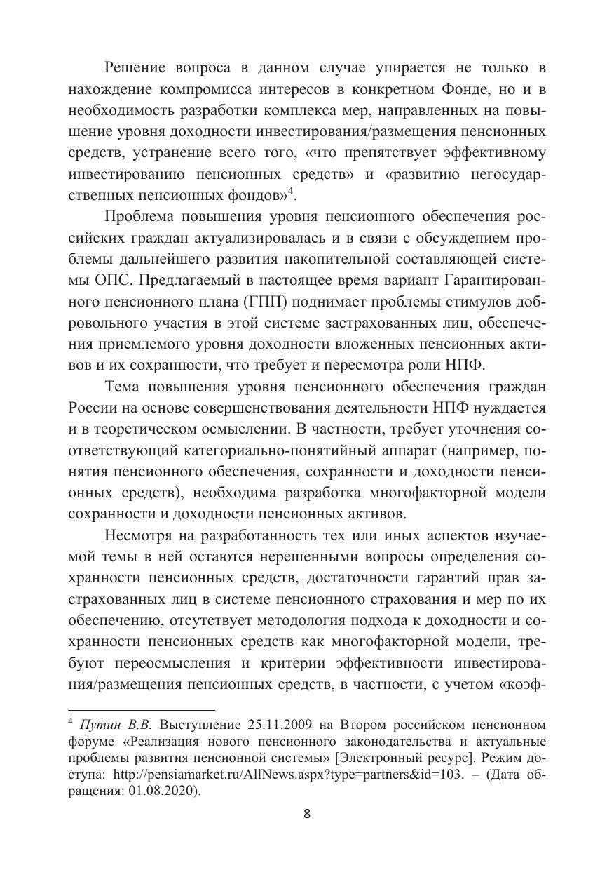 Роль и значение негосударственных пенсионных фондов в повышении уровня пенсионного обеспечения граждан Российской Федерации: вопросы методологии, теории и практики