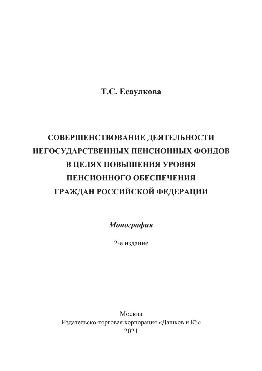 Совершенствование деятельности негосударственных пенсионных фондов в целях повышения уровня пенсионного обеспечения граждан Российской Федерации