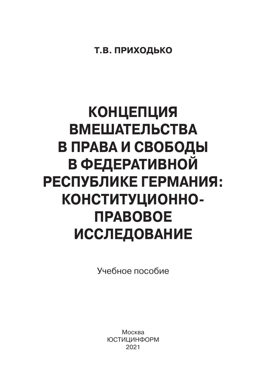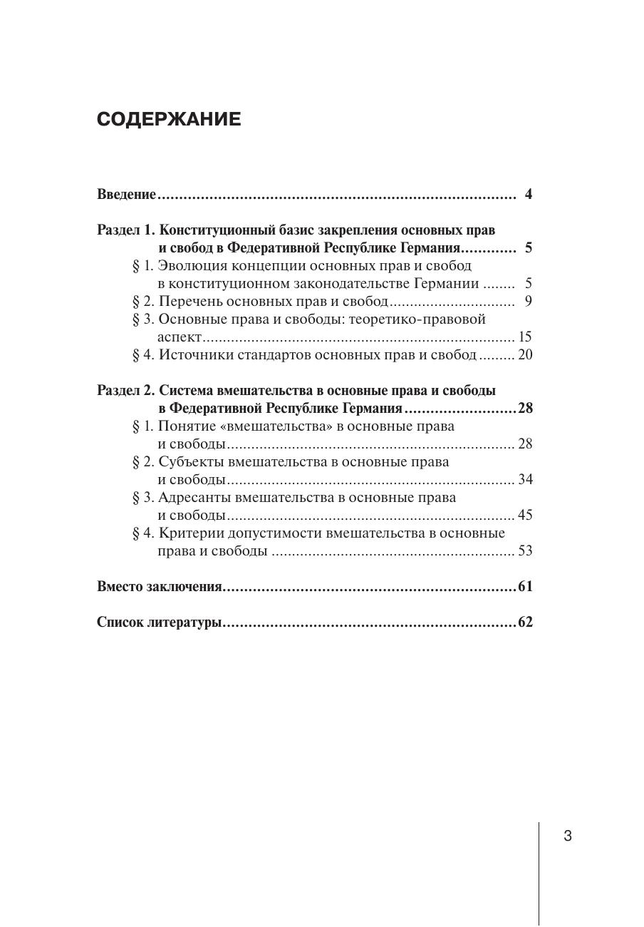 В настоящем учебном пособии раскрывается концепция вмешательства в основные права и свободы, нашедшая широкое применение в Федеративной Республике Германия: исследуется эволюция конституционного оформления прав и свобод человека и гражданина Германии, систематизируются представления о субъектном составе вмешательства в права и свободы, подробно исследуются его адресанты, а также анализируются актуальные проблемы признания вмешательства допустимым и правомерным. Материалы пособия могут быть использованы в учебном процессе в качестве дополнения и углубления понятийного материала, а также составить основу научных исследований в области прав и свобод человека и гражданина, совершенствования отечественного законодательства и правоприменительной практики. Учебное пособие может найти применение среди студентов бакалавриата, магистратуры, специалитета юридических направлений.