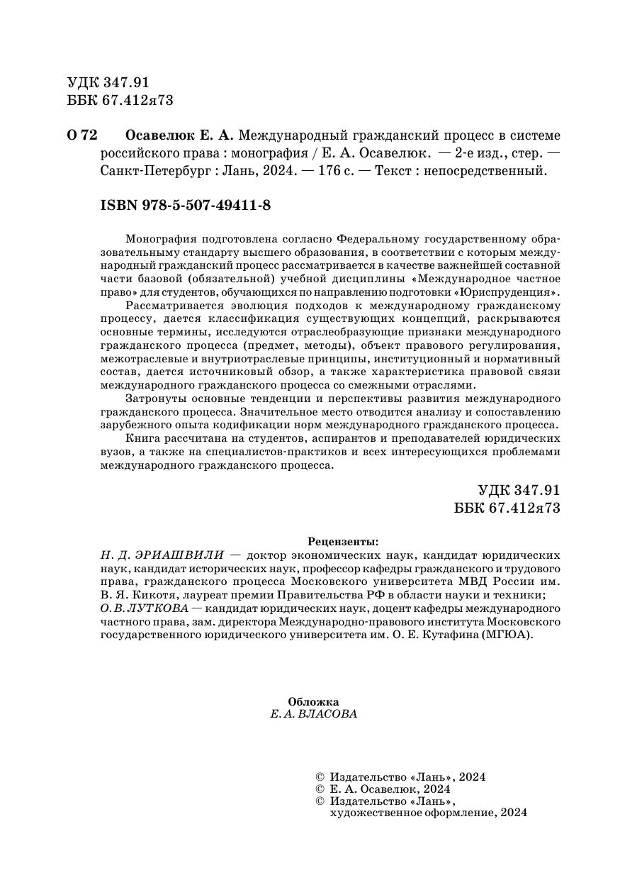 Монография подготовлена согласно Федеральному государственному образовательному стандарту, в соответствии с которым международный гражданский процесс рассматривается в качестве важнейшей составной части базовой (обязательной) учебной дисциплины «Международное частное право» для студентов, обучающихся по направлению подготовки «Юриспруденция». В монографии рассматривается эволюция подходов к международному гражданскому процессу, дается классификация существующих концепций, раскрываются основные термины, исследуются отраслеобразующие признаки международного гражданского процесса (предмет, методы), объект правового регулирования, межотраслевые и внутриотраслевые принципы, институционный и нормативный состав, дается источниковый обзор, а также характеристика правовой связи международного гражданского процесса со смежными отраслями. Затронуты основные тенденции и перспективы развития международного гражданского процесса. Значительное место отводится анализу и сопоставлению зарубежного опыта кодификации норм международного гражданского процесса. Книга рассчитана на студентов, аспирантов и преподавателей юридических вузов, а также на специалистов-практиков и всех интересующихся проблемами международного гражданского процесса.