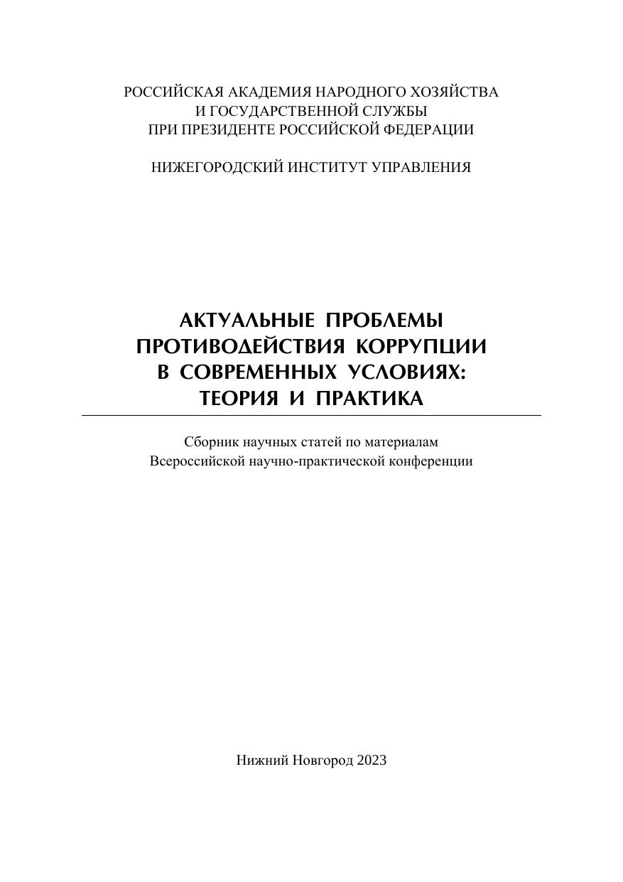 Актуальные проблемы противодействия коррупции в современных условиях: теория и практика: сборник научных трудов Всероссийской научно-практической конференции