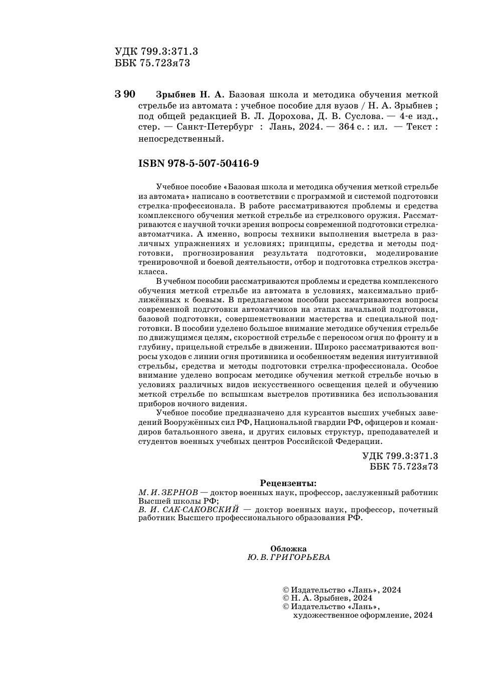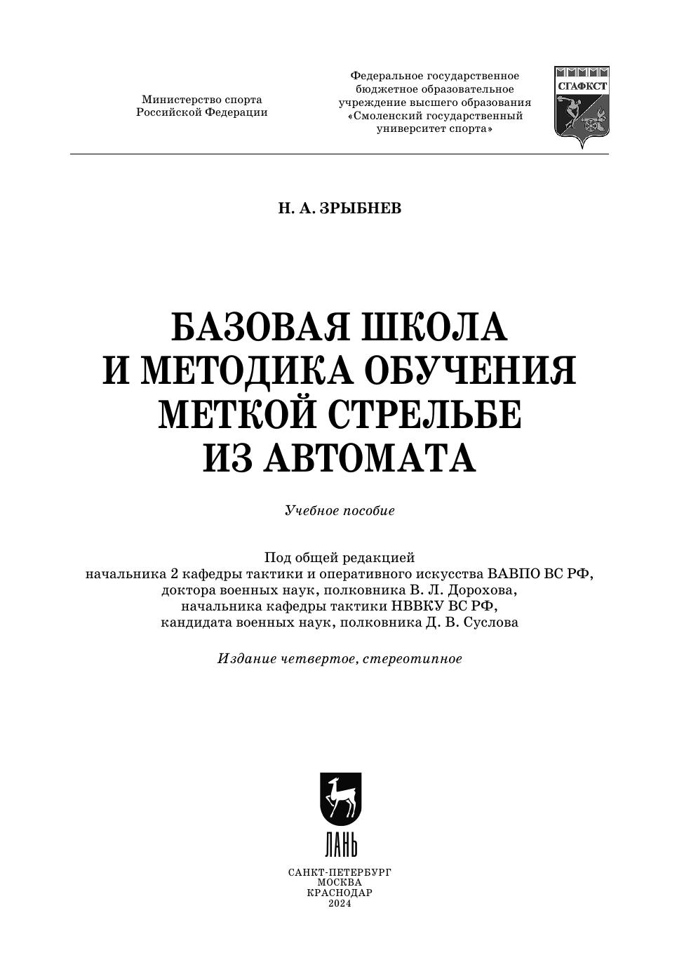 Учебное пособие «Базовая школа и методика обучения меткой стрельбе из автомата» написано в соответствии с программой и системой подготовки стрелка-профессионала. В работе рассматриваются проблемы и средства комплексного обучения меткой стрельбе из стрелкового оружия. Рассматриваются с научной точки зрения вопросы современной подготовки стрелка-автоматчика. А именно, вопросы техники выполнения выстрела в различных упражнениях и условиях, принципы, средства и методы подготовки, прогнозирования результата подготовки, моделирование тренировочной и боевой деятельности, отбор и подготовка стрелков экстра-класса. В учебном пособии рассматриваются проблемы и средства комплексного обучения меткой стрельбе из автомата в условиях, максимально приближённых к боевым. В предлагаемом пособии рассматриваются вопросы современной подготовки автоматчиков на этапах начальной подготовки, базовой подготовки, совершенствовании мастерства и специальной подготовки. В пособии уделено большое внимание методике обучения стрельбе по движущимся целям, скоростной стрельбе с переносом огня по фронту и в глубину, прицельной стрельбе в движении. Широко рассматриваются вопросы уходов с линии огня противника и особенностям ведения интуитивной стрельбы, средства и методы подготовки стрелка-профессионала. Особое внимание уделено вопросам методике обучения меткой стрельбе ночью в условиях различных видов искусственного освещения целей и обучению меткой стрельбе по вспышкам выстрелов противника без использования приборов ночного видения. Учебное пособие предназначено для курсантов высших учебных заведений Вооружённых сил РФ, Национальной гвардии РФ, офицеров и командиров батальонного звена, и других силовых структур, преподавателей и студентов военных учебных центров Российской Федерации.