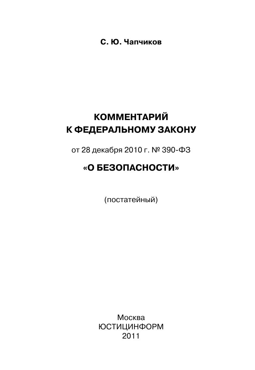 Комментарий к Федеральному закону от 28 декабря 2010 г. № 390-ФЗ «О безопасности» (постатейный)