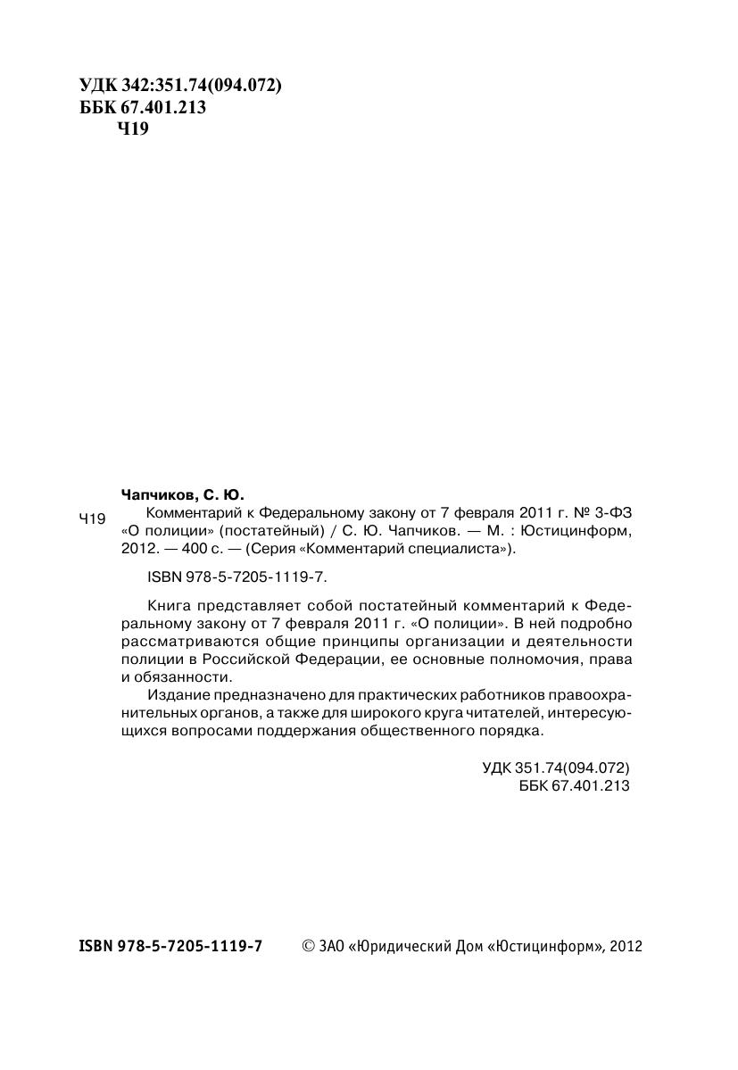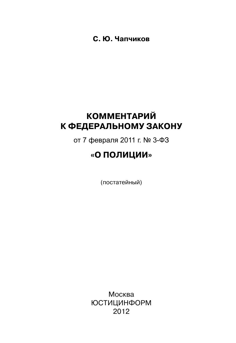 Комментарий к Федеральному закону от 7 февраля 2011 г. № 3-ФЗ «О полиции» (постатейный)
