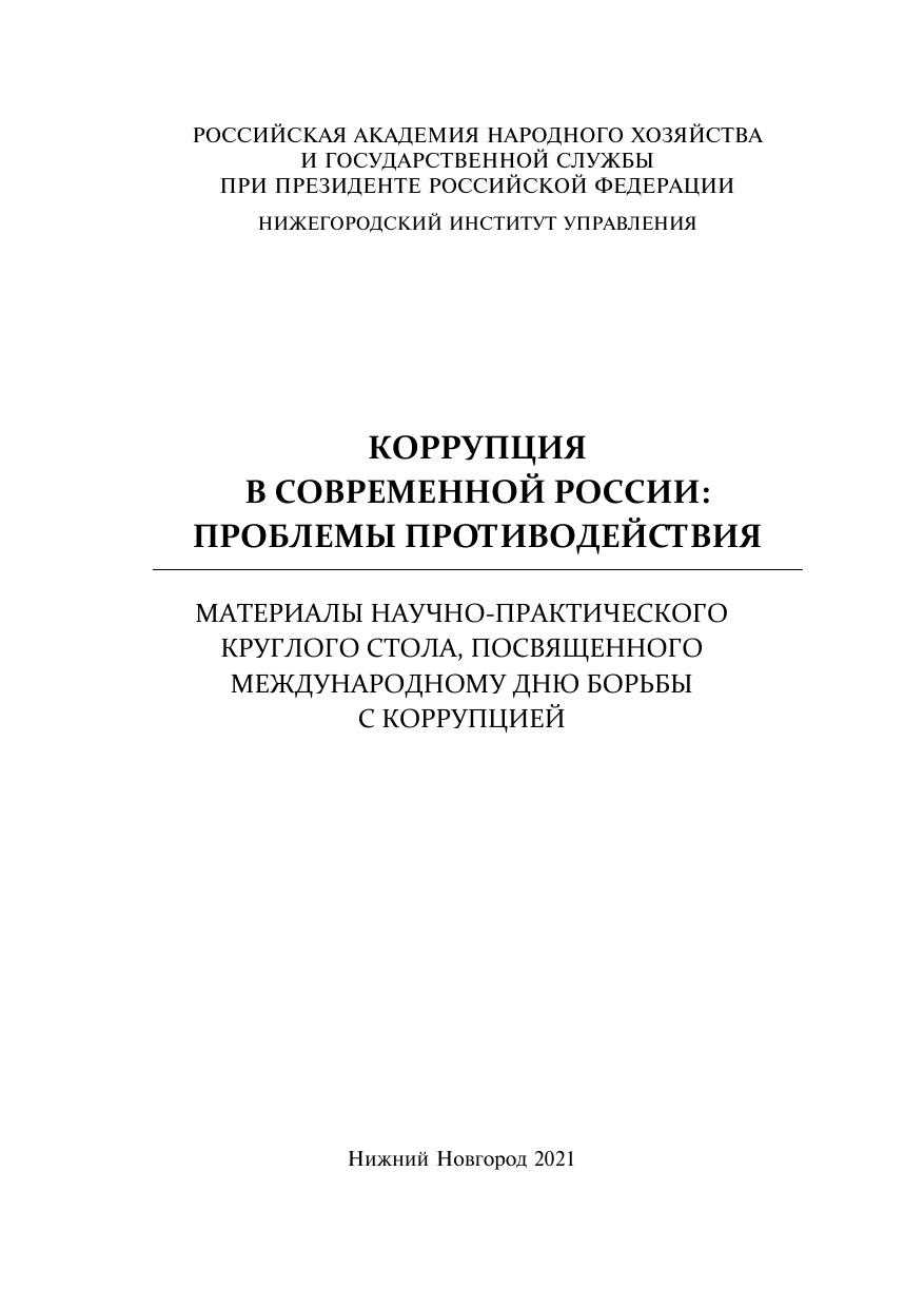 Коррупция в современной России: проблемы противодействия: сборник материалов научно-практического круглого стола