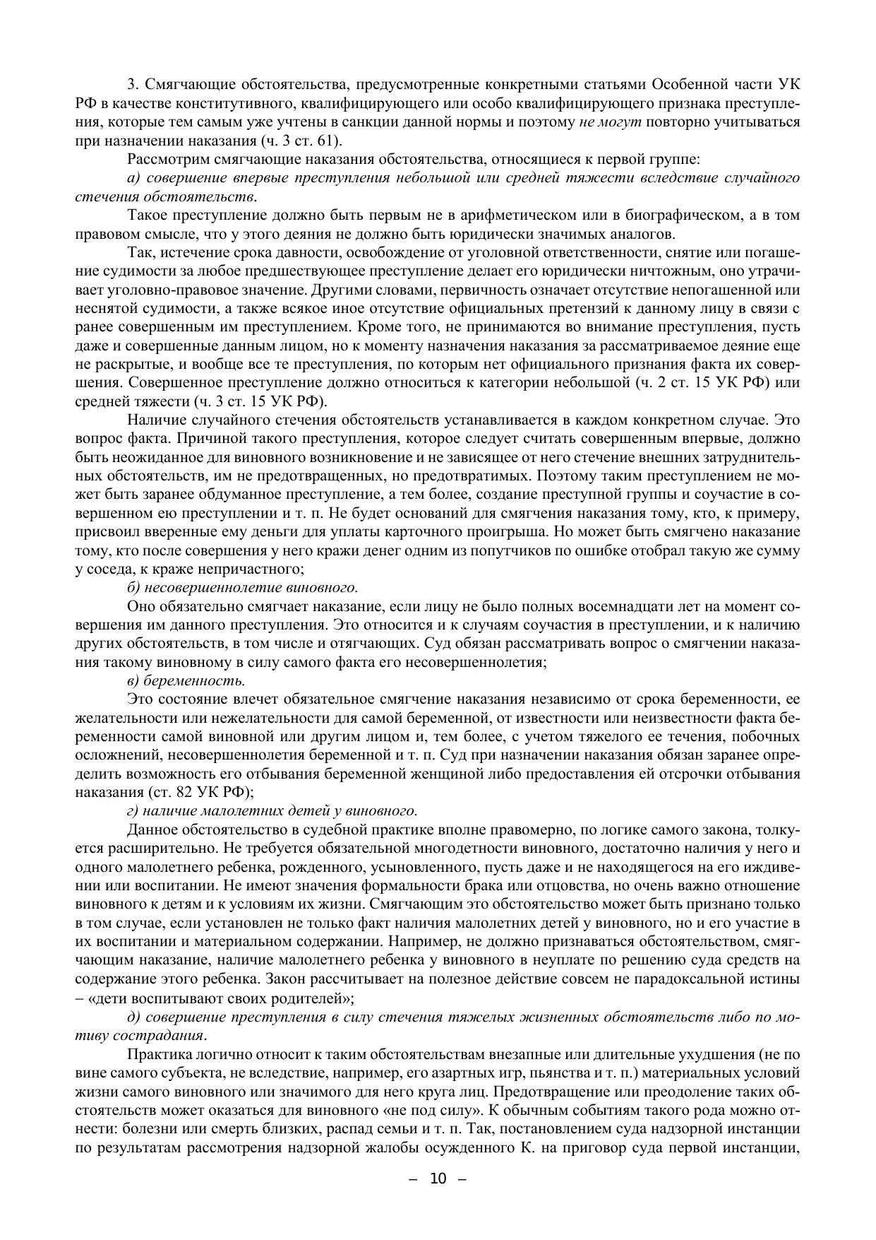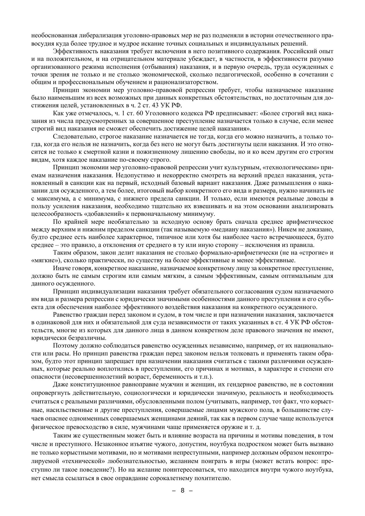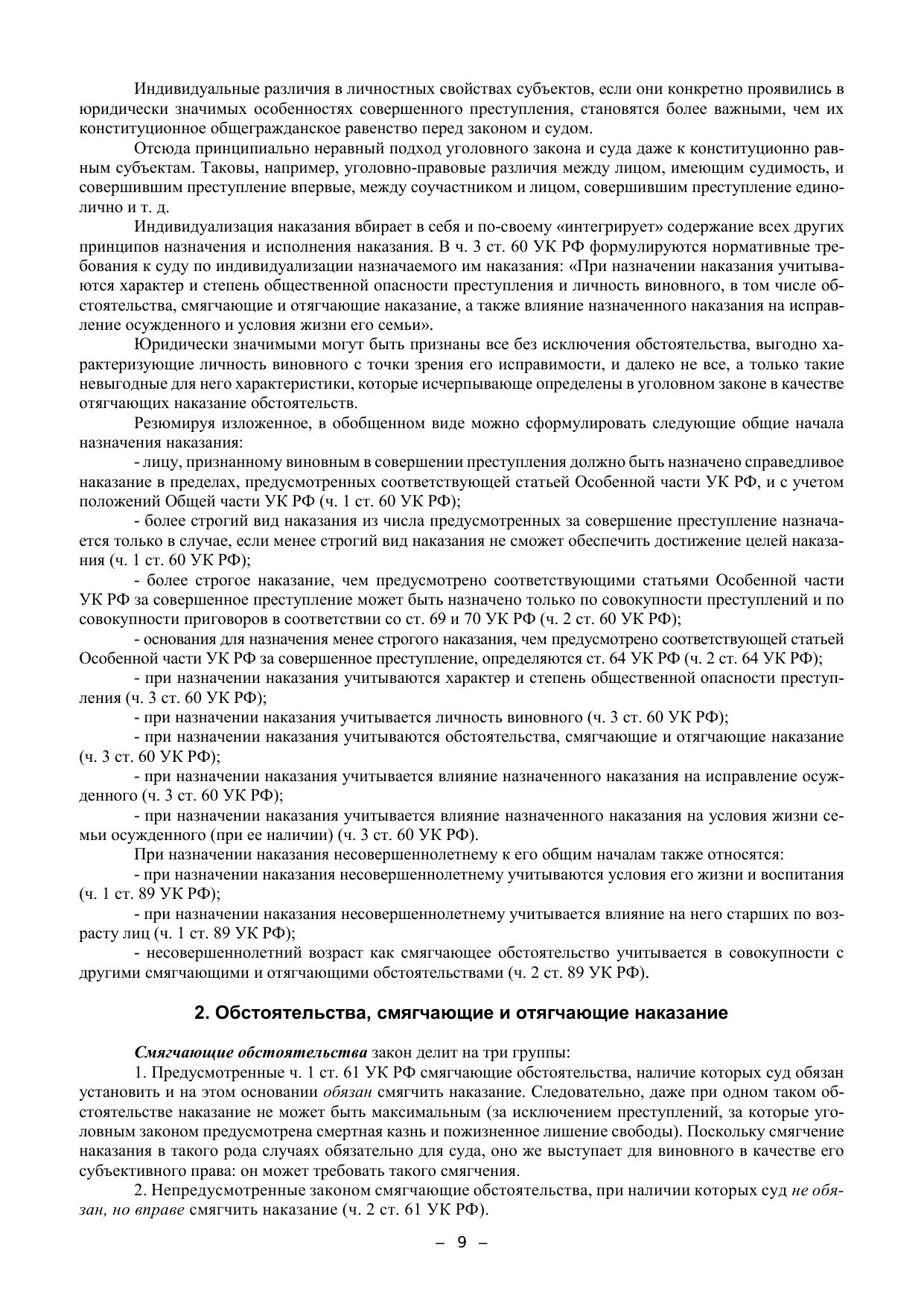 Учебно-методическое пособие подготовлено в соответствии с положениями Уголовного кодекса РФ 1996 г. (по состоянию на 1 октября 2020 года), действующего федерального зако-нодательства России и современной судебной практики Верховного суда РФ, а также в соот-ветствии с иными нормативными правовыми актами Российской Федерации, содержащими нормы, регулирующие отношения в сфере образования, нормативными правовыми актами Ми-нистерства образования и науки Российской Федерации. Пособие включает материалы и методические указания для углубленного изучения тем «Назначение наказания» и «Исполнение наказания». В нем рассматриваются проблемные тео-ретические вопросы, относящиеся к этим темам, формулируются учебные задания по теме, рас-крываются методические особенности решения ситуационных задач. Пособие содержит значи-мые извлечения из соответствующих постановлений Пленума Верховного Суда РФ, а также извлечения из решений судов различных инстанций. Издание предназначено для студентов, обучающихся в юридических вузах по направле-ниям подготовки (специальностям) 40.05.01 «Правовое обеспечение национальной безопас-ности» и 40.03.01 «Юриспруденция» (бакалавриат), а также для преподавателей и практиче-ских работников правоохранительных органов.