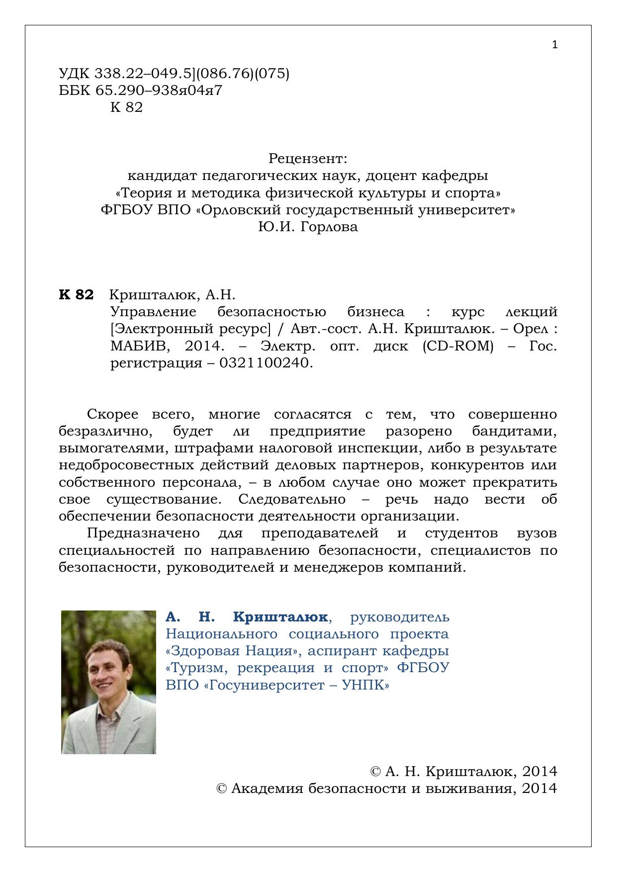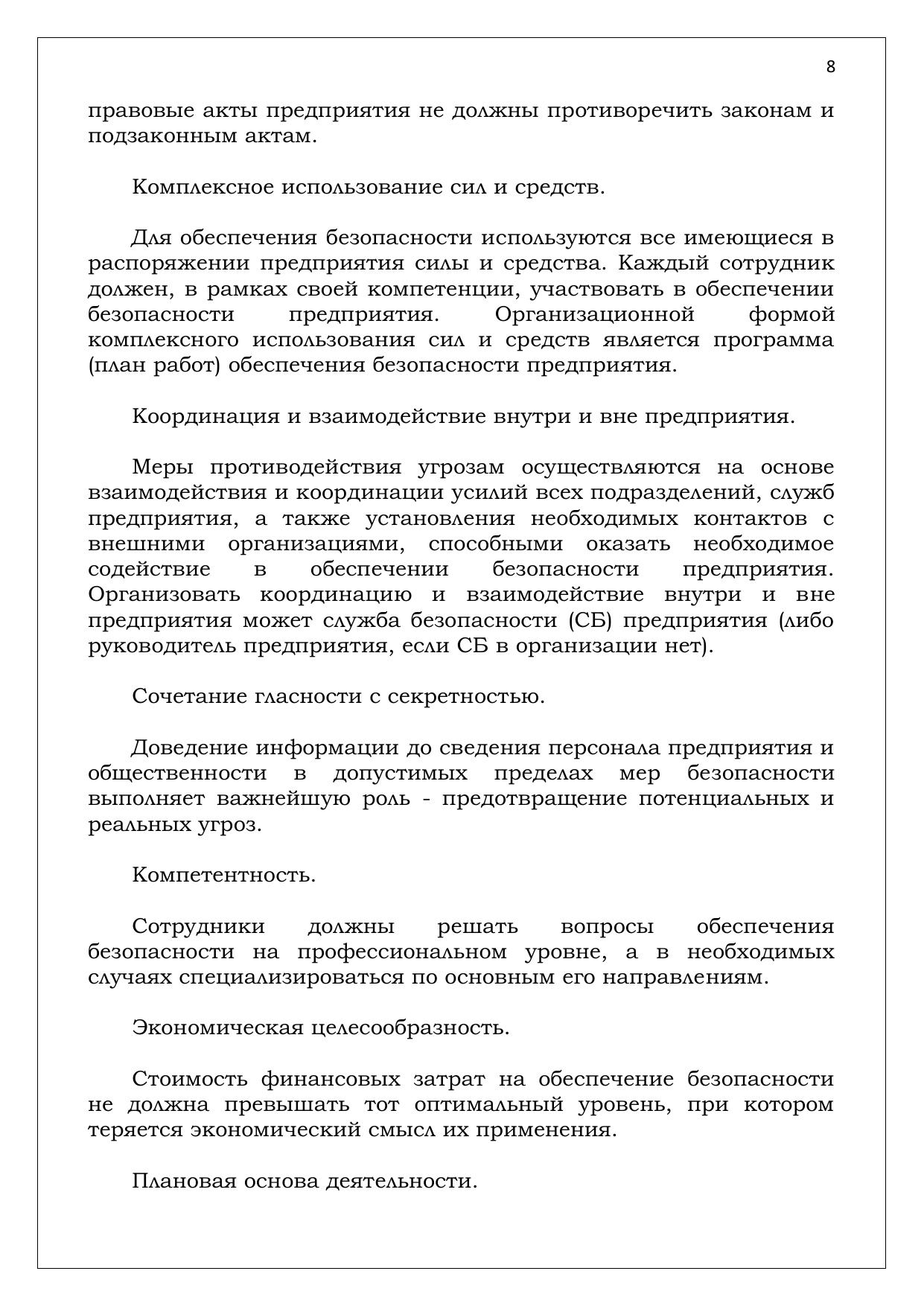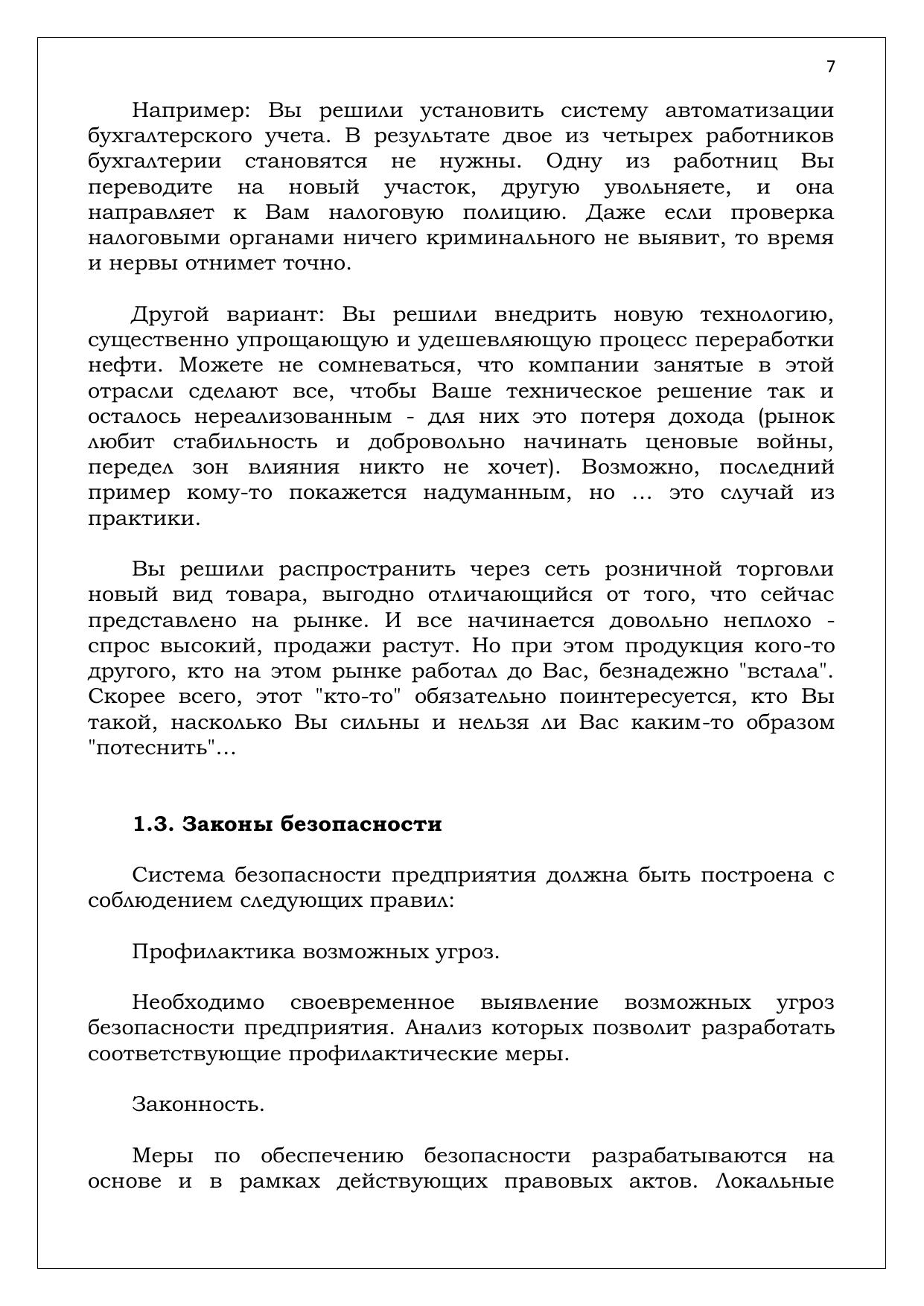 Скорее всего, многие согласятся с тем, что совершенно безразлично, будет ли предприятие разорено бандитами, вымогателями, штрафами налоговой инспекции, либо в результате недобросовестных действий деловых партнеров, конкурентов или собственного персонала, – в любом случае оно может прекратить свое существование. Следовательно – речь надо вести об обеспечении безопасности деятельности организации. Предназначено для преподавателей и студентов вузов