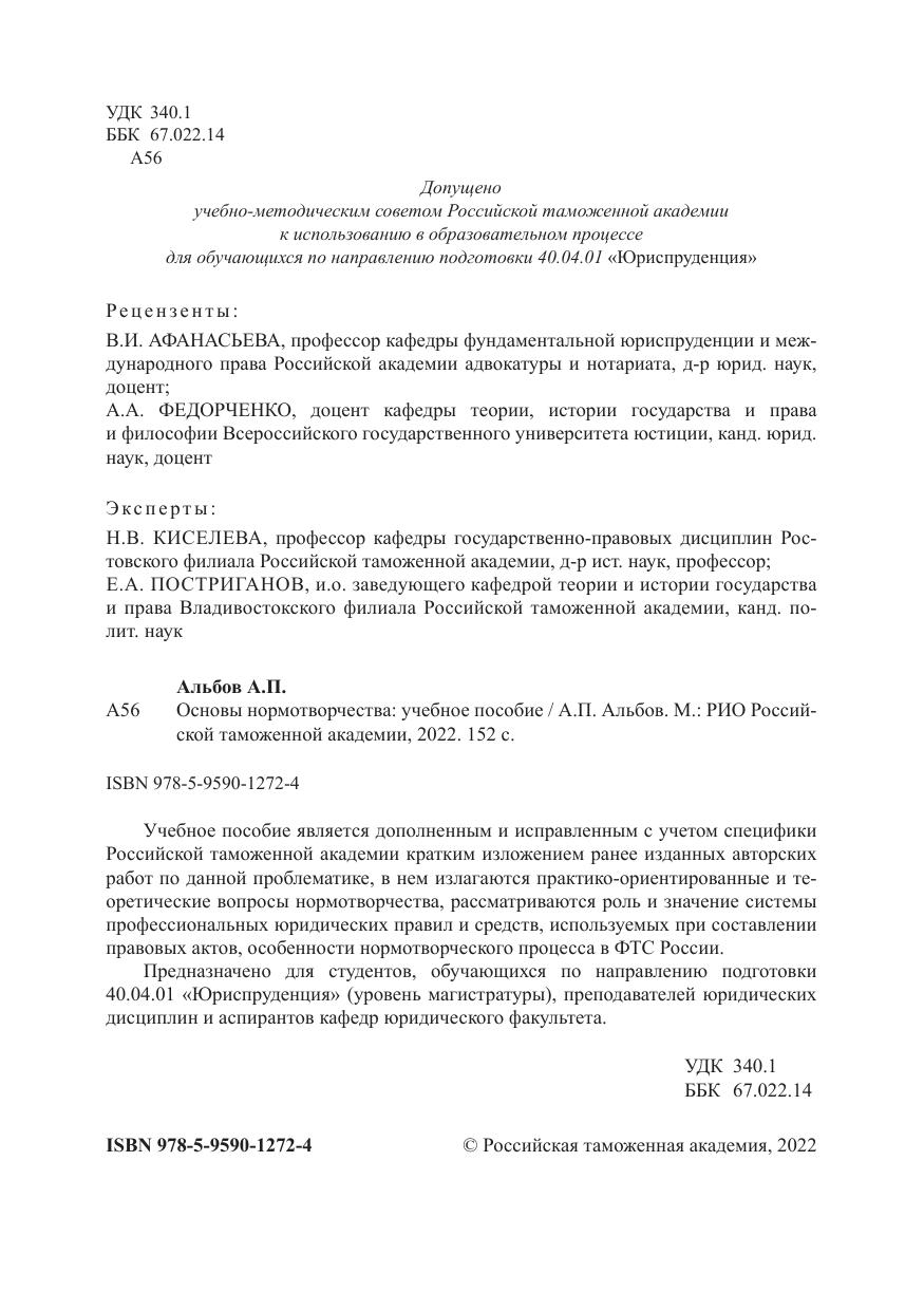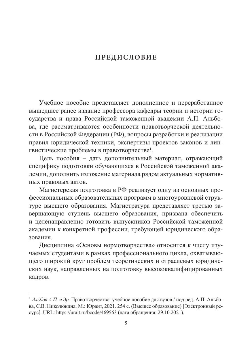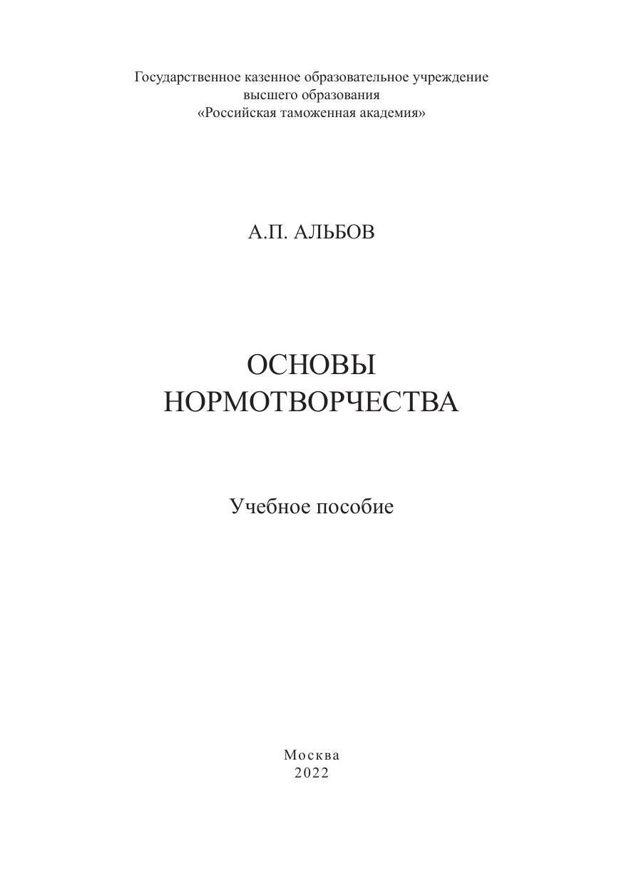 Учебное пособие является дополненным и исправленным с учетом специфики Российской таможенной академии кратким изложением ранее изданных авторских работ по данной проблематике, в нем излагаются практико-ориентированные и теоретические вопросы нормотворчества, рассматриваются роль и значение системы профессиональных юридических правил и средств, используемых при составлении правовых актов, особенности нормотворческого процесса в ФТС России. Предназначено для студентов, обучающихся по направлению подготовки 40.04.01 «Юриспруденция» (уровень магистратуры), преподавателей юридических дисциплин и аспирантов кафедр юридического факультета.