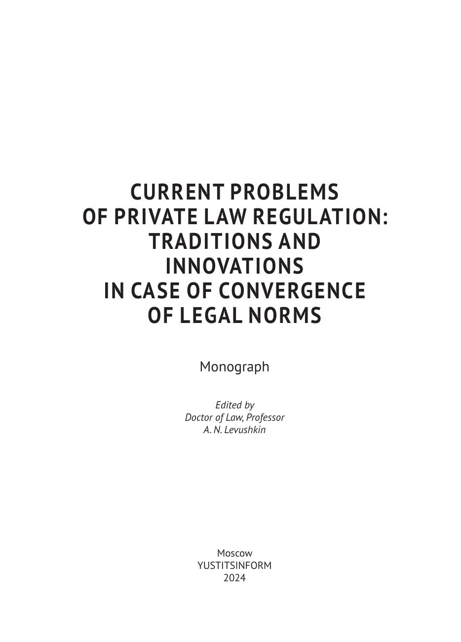 Современные проблемы частноправового регулирования: традиции и инновации при конвергенции норм права