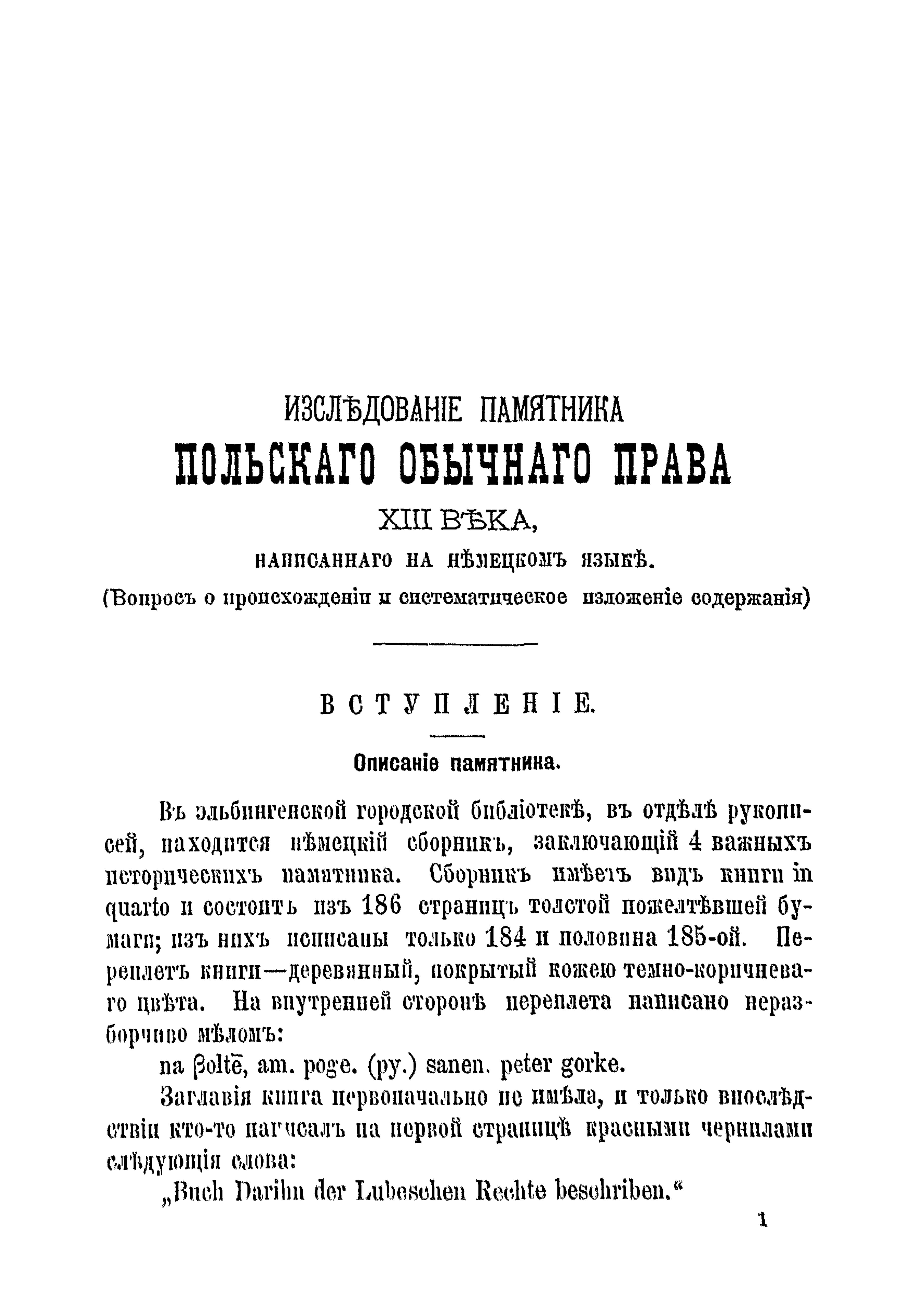 Исследование памятника польского обычного права XIII века, написанного на немецком языке