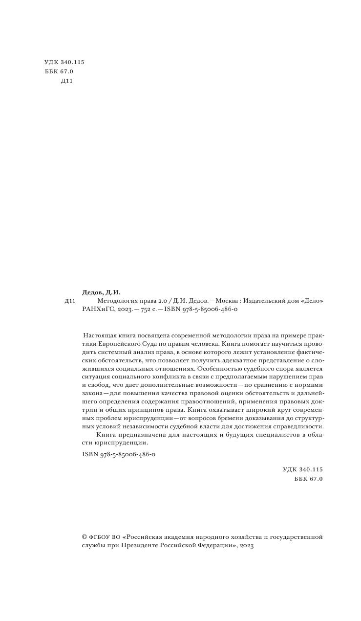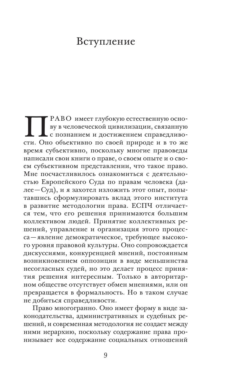 Настоящая книга посвящена современной методологии права на примере практики Европейского Суда по правам человека. Книга помогает научиться проводить системный анализ права, в основе которого лежит установление фактических обстоятельств, что позволяет получить адекватное представление о сложившихся социальных отношениях. Особенностью судебного спора является ситуация социального конфликта в связи с предполагаемым нарушением прав и свобод, что дает дополнительные возможности — по сравнению с нормами закона — для повышения качества правовой оценки обстоятельств и дальнейшего определения содержания правоотношений, применения правовых доктрин и общих принципов права. Книга охватывает широкий круг современных проблем юриспруденции — от вопросов бремени доказывания до структурных условий независимости судебной власти для достижения справедливости. Книга предназначена для настоящих и будущих специалистов в области юриспруденции.