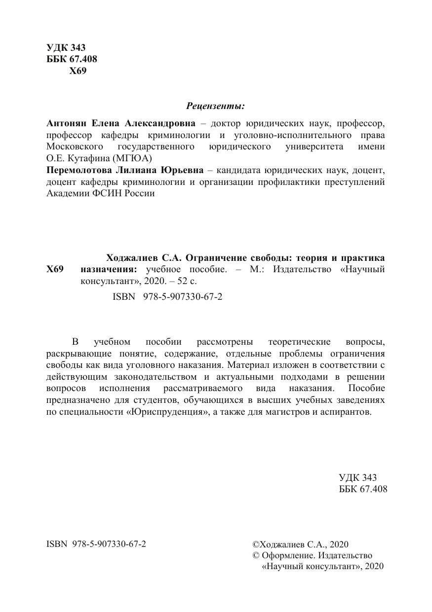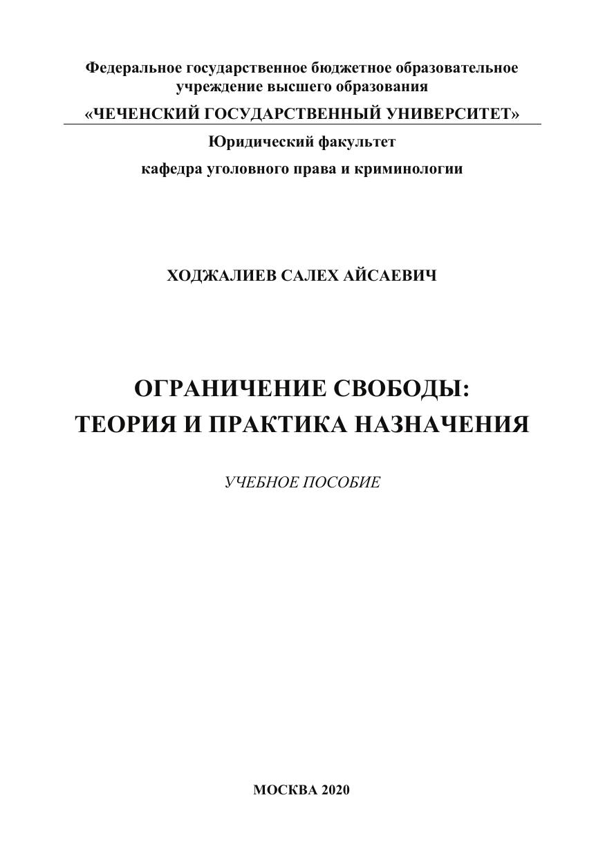 В учебном пособии рассмотрены теоретические вопросы, раскрывающие понятие, содержание, отдельные проблемы ограничения свободы как вида уголовного наказания. Материал изложен в соответствии с действующим законодательством и актуальными подходами в решении вопросов исполнения рассматриваемого вида наказания. Пособие предназначено для студентов, обучающихся в высших учебных заведениях по специальности «Юриспруденция», а также для магистров и аспирантов.