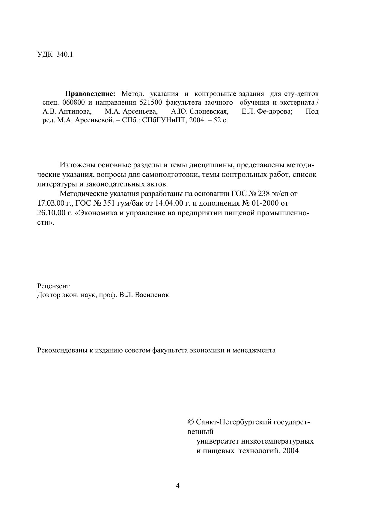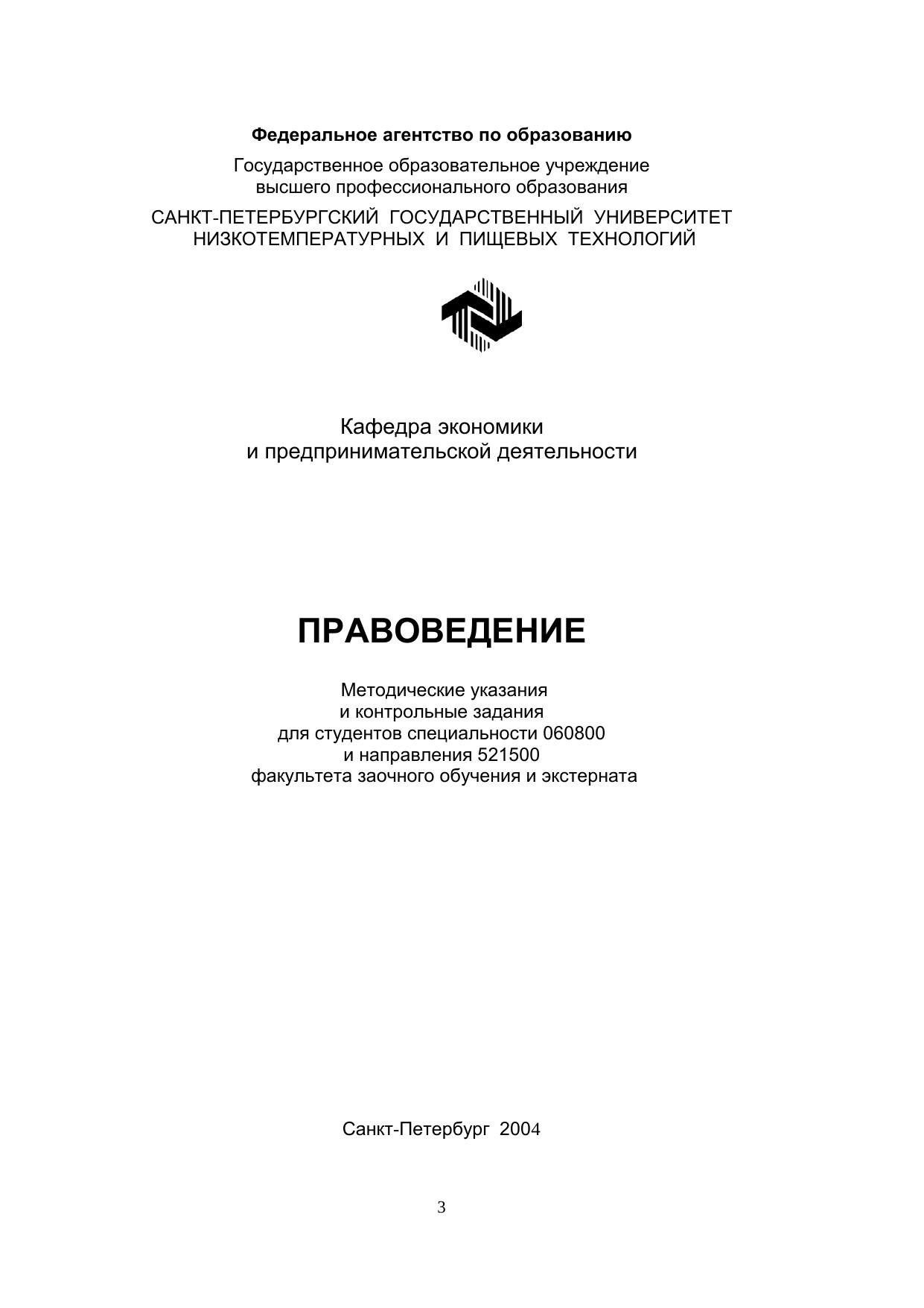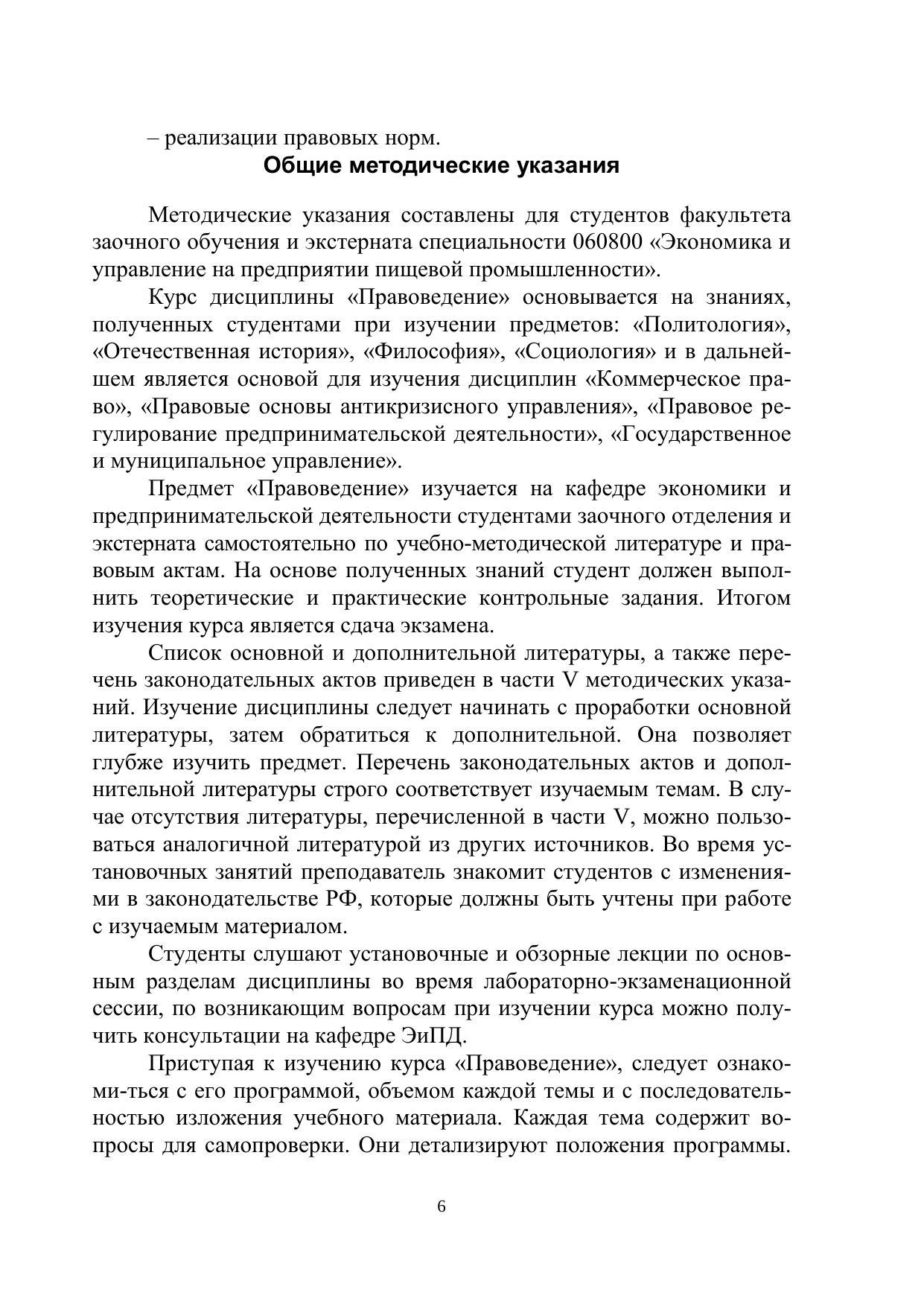 Правоведение: Методические указания и контрольные задания для студентов спец. 060800 и направления 521500 факультета заочного обучения и экстерната