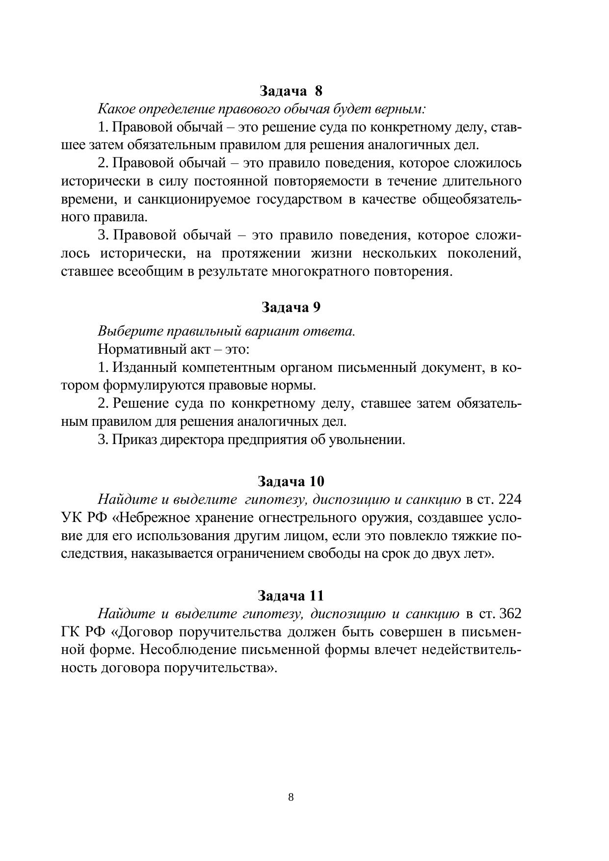 Практикум содержит контрольные вопросы и юридические задачи в соответствии с отраслями права, составленные с учетом современной судебной практики. К каждому разделу прилагается список литературы и перечень нормативных актов. Указаны ресурсы Интернет. Рекомендован в качестве учебного пособия для проведения практических занятий по правоведению и предназначен для студентов всех специальностей технических вузов.