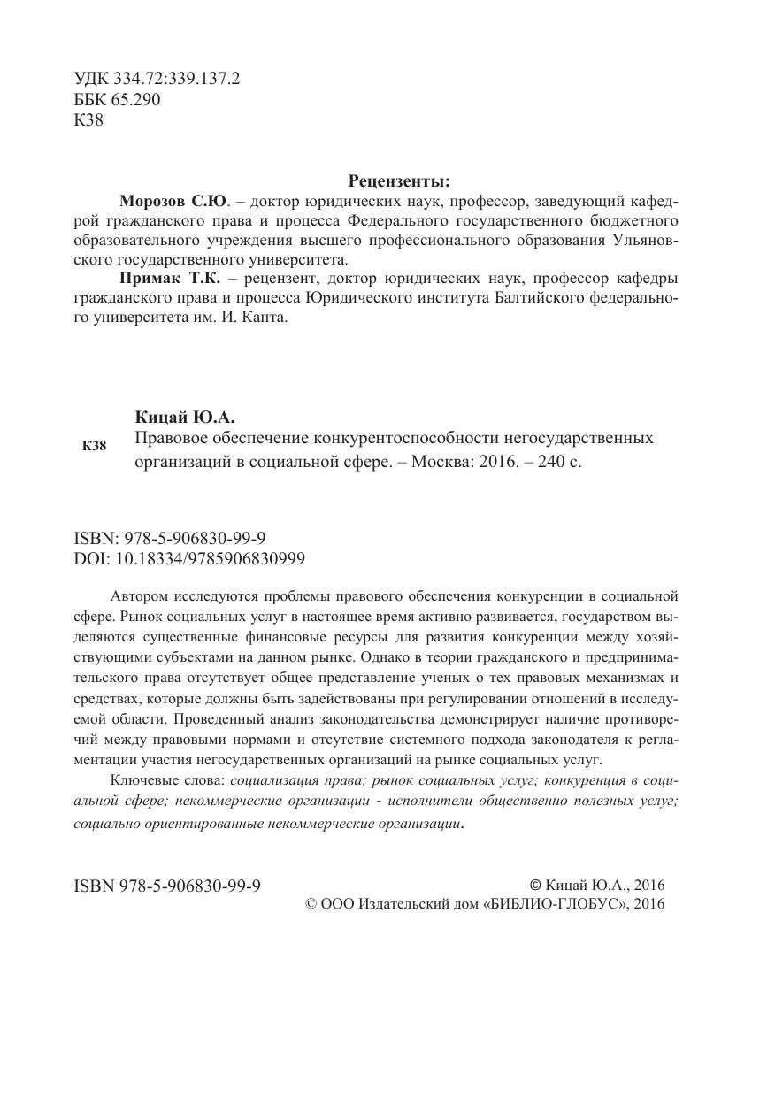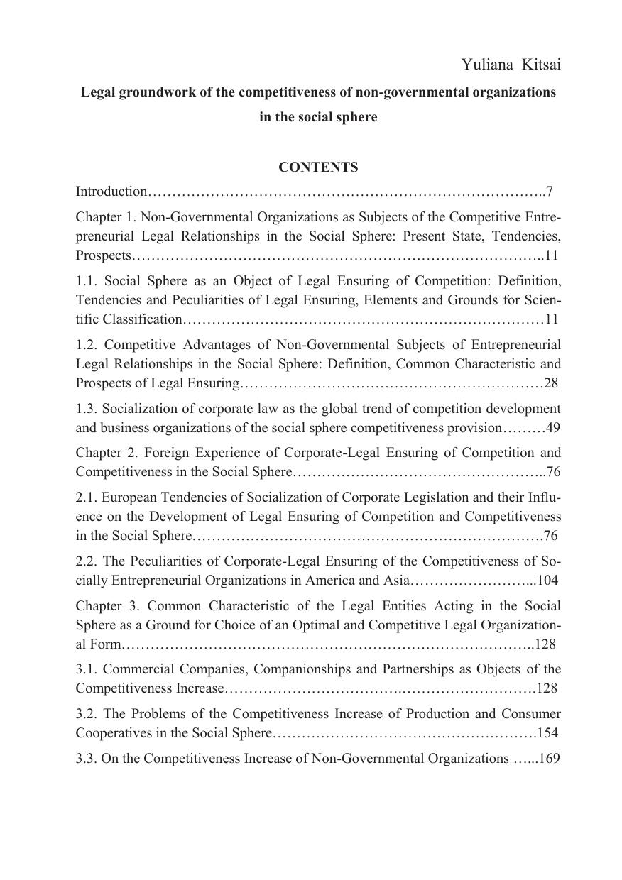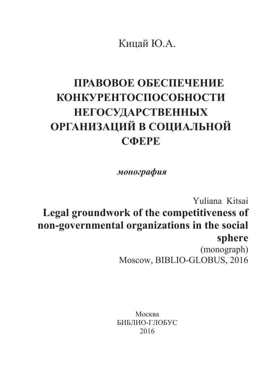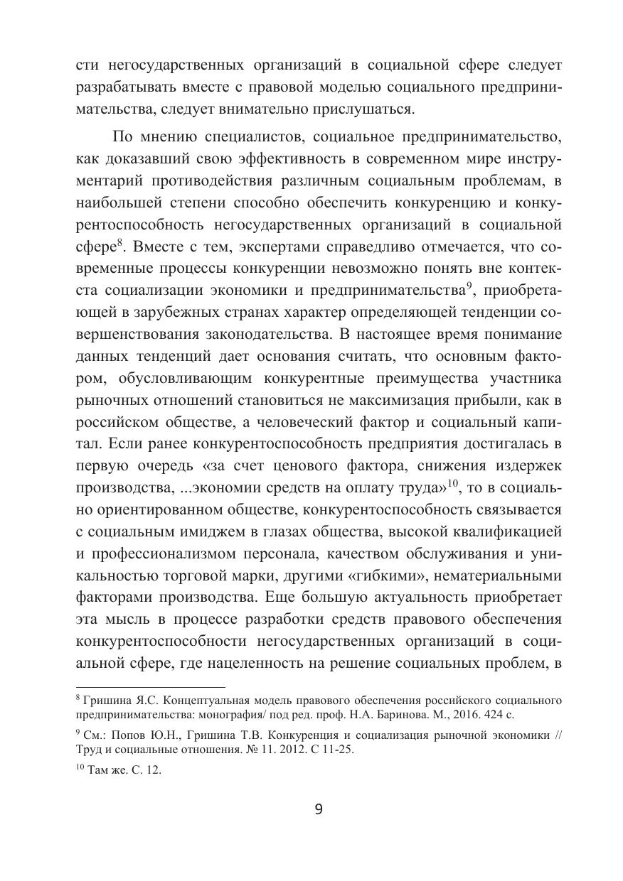 Правовое обеспечение конкурентоспособности негосударственных организаций в социальной сфере