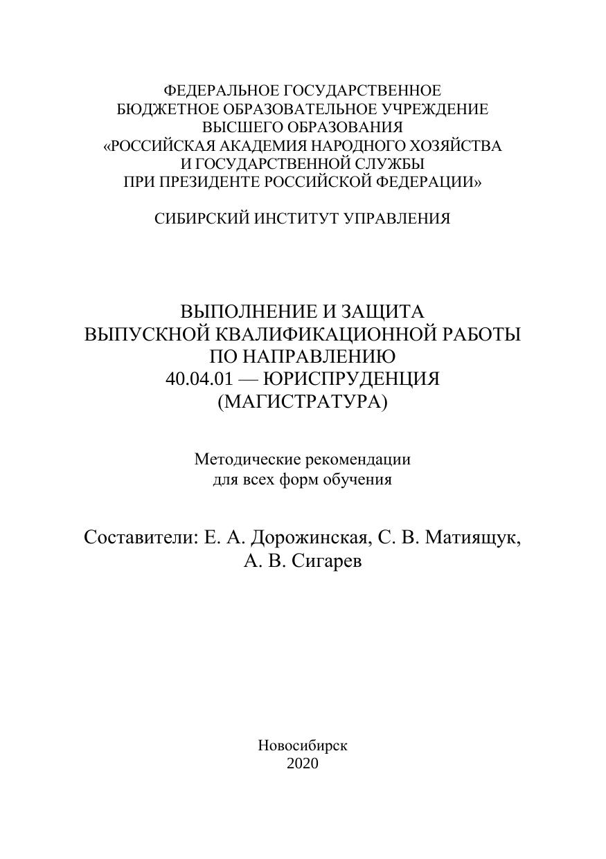 Выполнение и защита выпускных квалификационных работ по направлению 40.04.01 — Юриспруденция (магистратура)