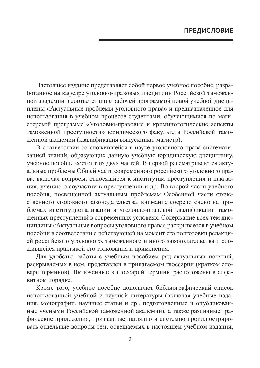 Учебное пособие подготовлено в соответствии с рабочей программой учебной дисциплины «Актуальные проблемы уголовного права» и предназначено для студентов, обучающихся по магистерской программе «Уголовно-правовые и криминологические аспекты таможенной преступности» юридического факультета Российской таможенной академии.