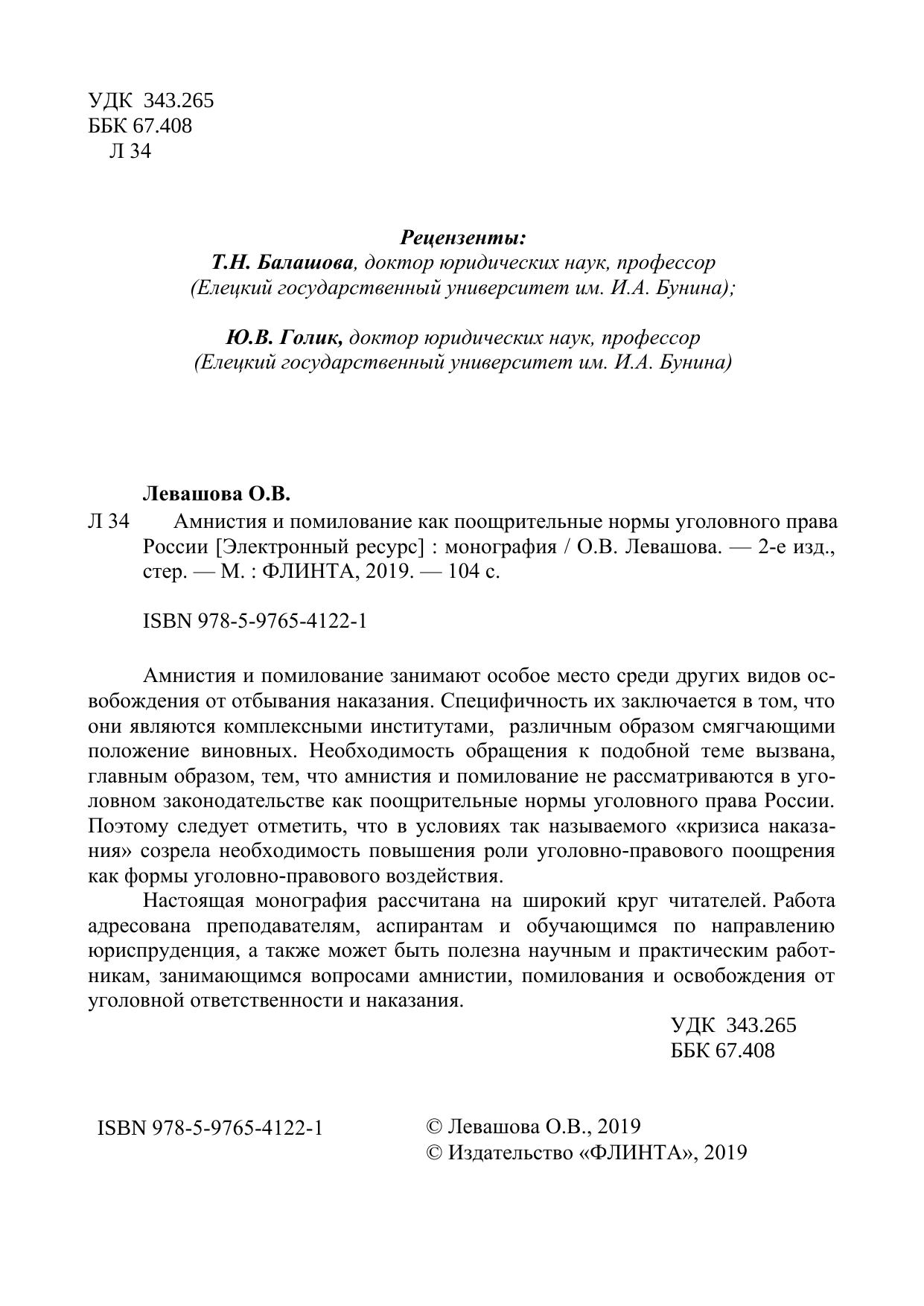 Настоящая монография рассчитана на широкий круг читателей. Работа адресована преподавателям, аспирантам и обучающимся по направлению юриспруденция, а также может быть полезна научным и практическим работникам, занимающимся вопросами амнистии, помилования и освобождения от уголовной ответственности и наказания.
