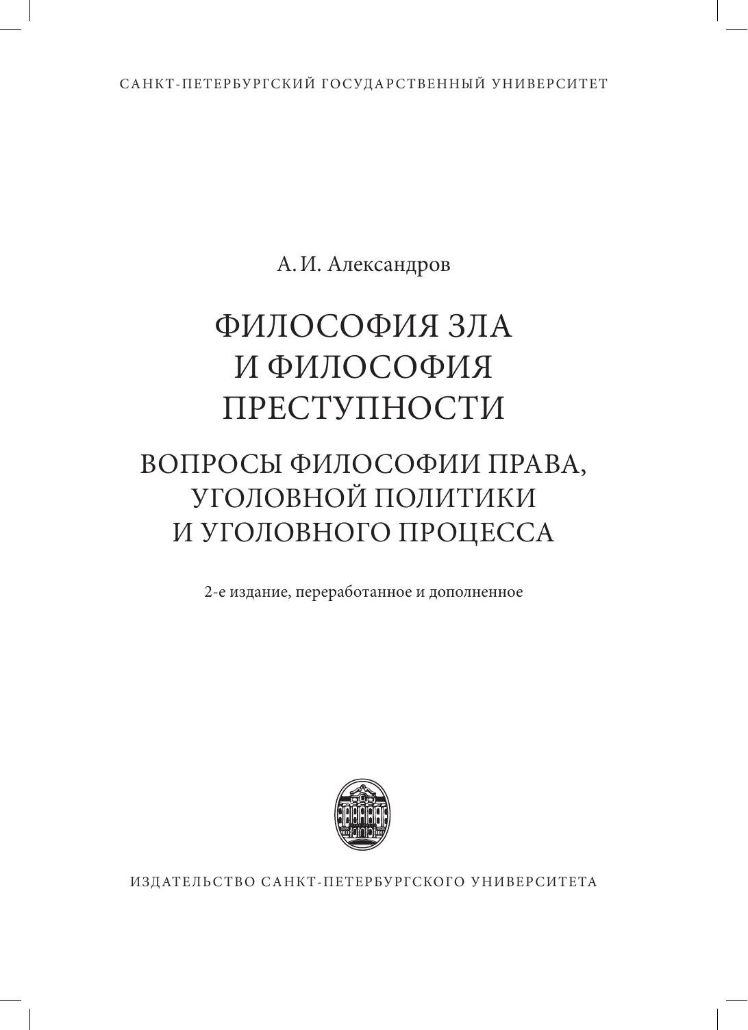 Философия зла и философия преступности (вопросы философии права, уголовной политики и уголовного процесса)
