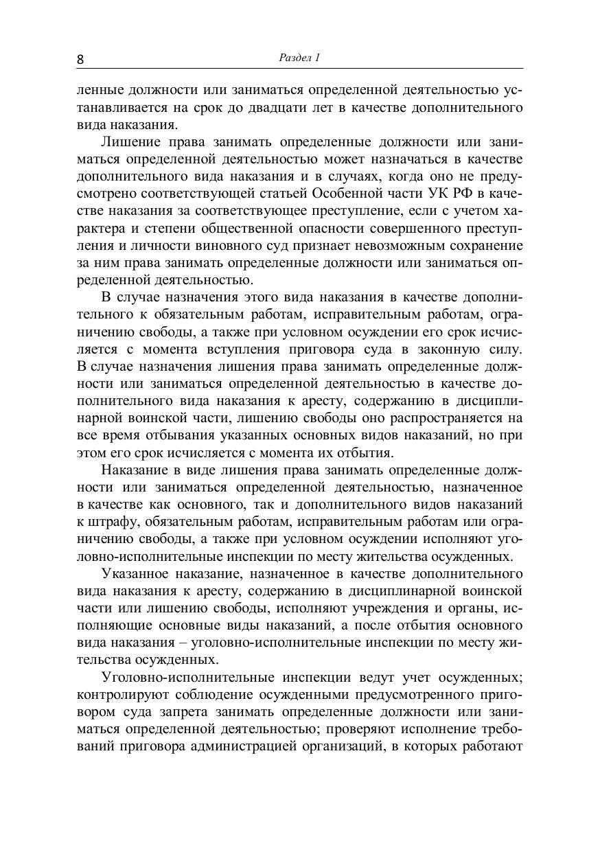 Рассматриваются порядок и правовые последствия исполнения уголовно-исполнительными инспекциями наказаний и мер уголовно-правового характера без изоляции от общества, прикладные проблемы, связанные с повышением их эффективности. Для студентов (курсантов, слушателей), аспирантов (адъюнктов), профессорско-преподавательского состава высших и средних специальных учебных заведений юридического профиля, сотрудников судебных органов, прокуратуры, уголовно-исполнительных инспекций.