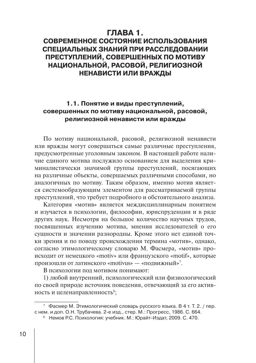 Использование специальных знаний при расследовании преступлений, совершенных по мотиву национальной, расовой, религиозной ненависти или вражды