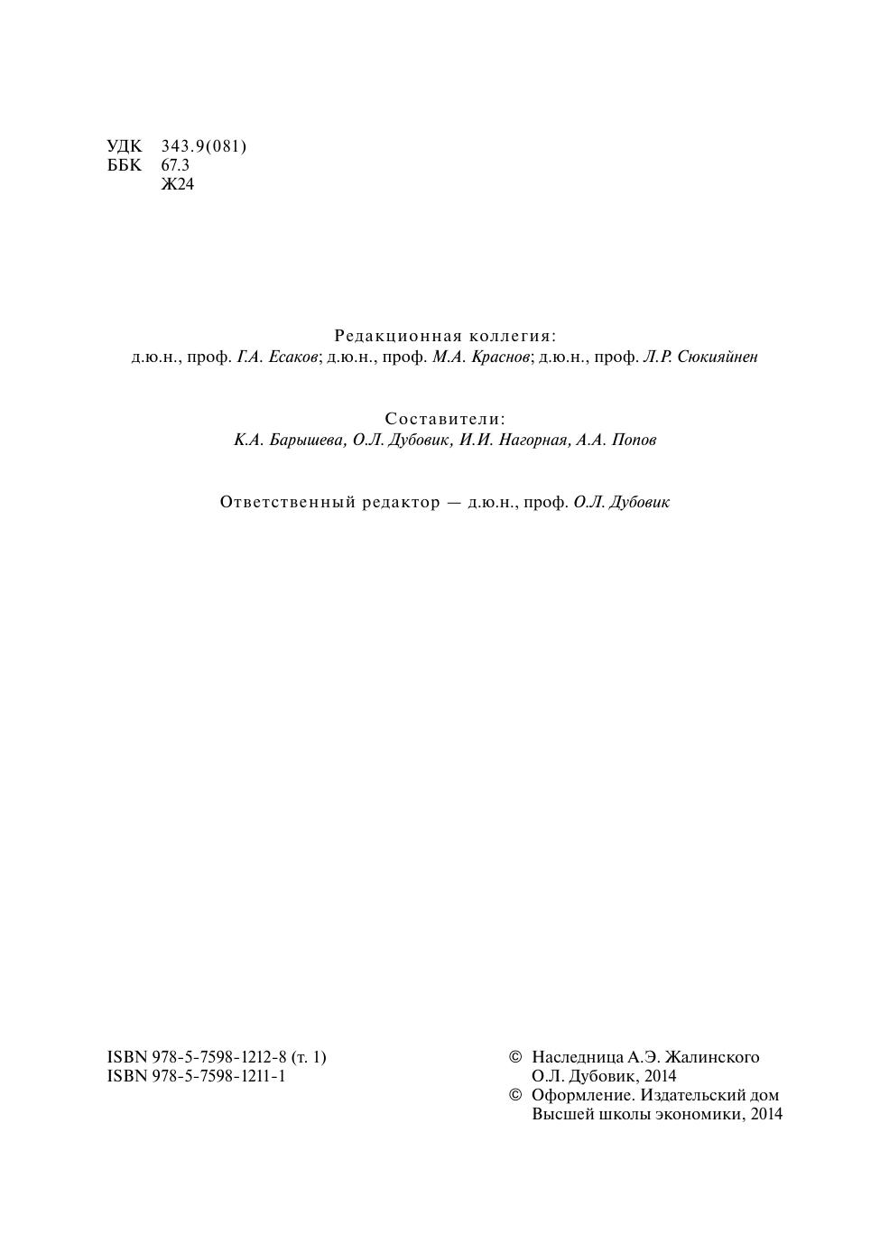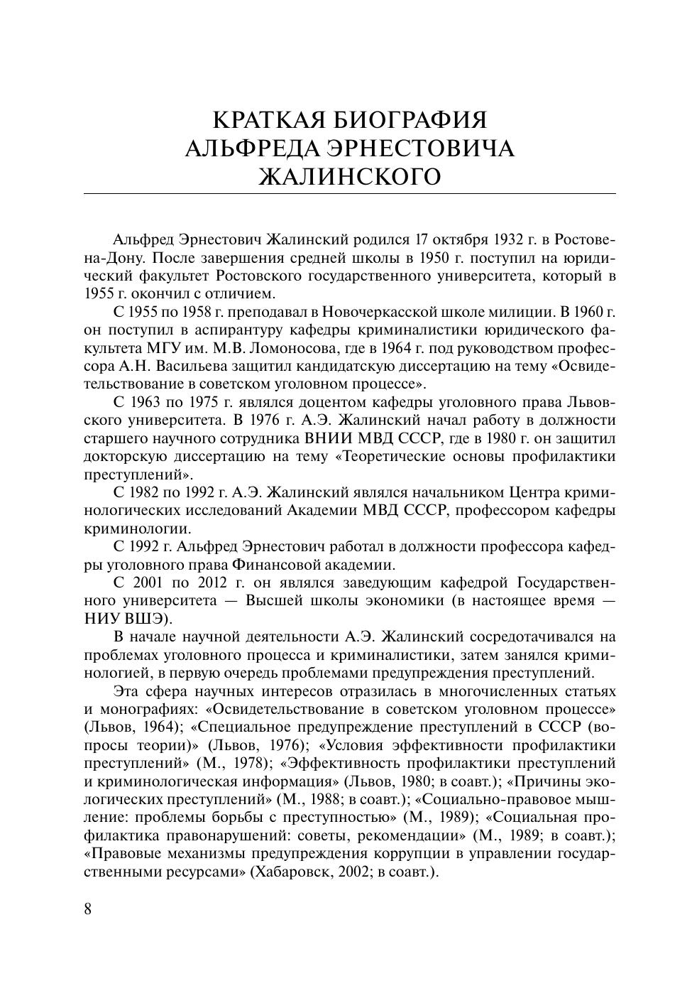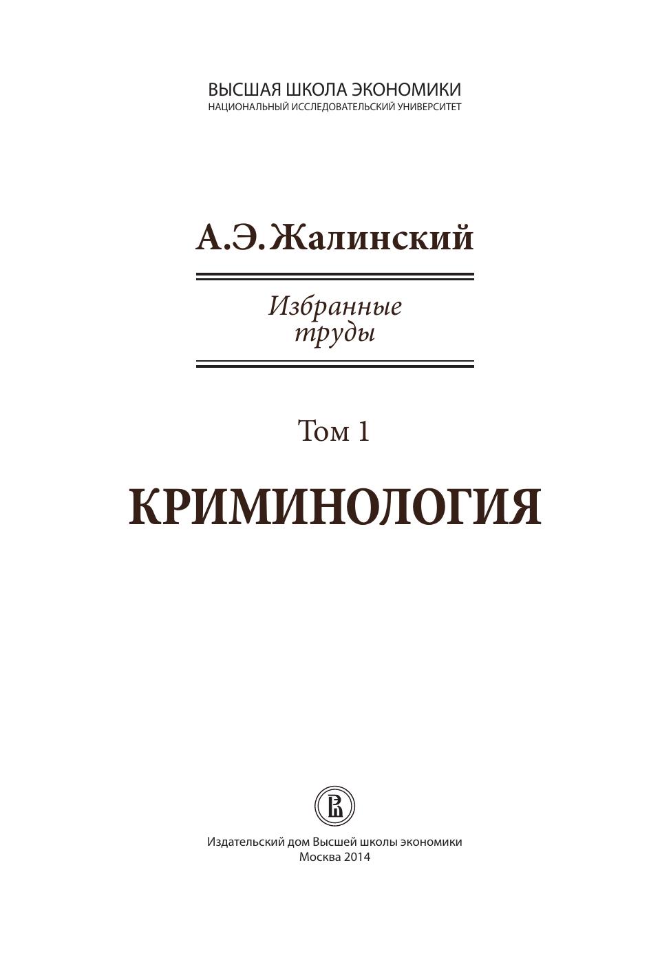 В настоящее издание вошли избранные труды А.Э. Жалинского, известного исследователя в области теоретических проблем уголовного права и криминологии, социологии права, сравнительного правоведения и зарубежного уголовного права и криминологии. По этой тематике им написано более 350 научных трудов, в том числе монографий, опубликованных в академических и профессиональных журналах в России и за рубежом. Многие его работы, а также выдвинутые и обоснованные идеи сыграли значительную роль в развитии науки. В том 1 вошли сведения об этапах научного творчества А.Э. Жалинского, опубликованных им работах и данные о его личности как ученого, человека и научного руководителя, а также отдельные труды, полностью или в извлечениях, отражающие его взгляды на предмет, систему, методы криминологической науки, ее место и роль в структуре правоведения, разработанные им подходы к понятию и природе преступности, ее причин, а главное — созданные им основы теории профилактики преступлений как одной из столпов криминологии в ее научном и практическом значении. Представлены как опубликованные труды и их фрагменты, так и отдельные разработки, которые не вышли в свет вплоть до его кончины. Для специалистов в области криминологии, уголовного права и социологии права — практических и научных работников, преподавателей вузов, аспирантов, студентов и всех интересующихся историей правовой и криминологической мысли, целями, средствами, достижениями и просчетами борьбы с преступностью в нашей стране.