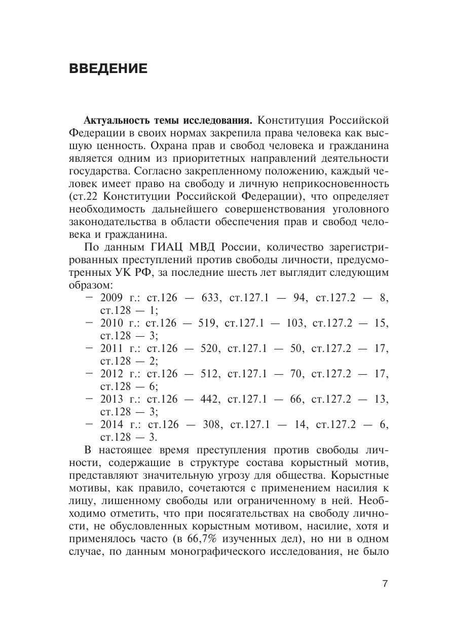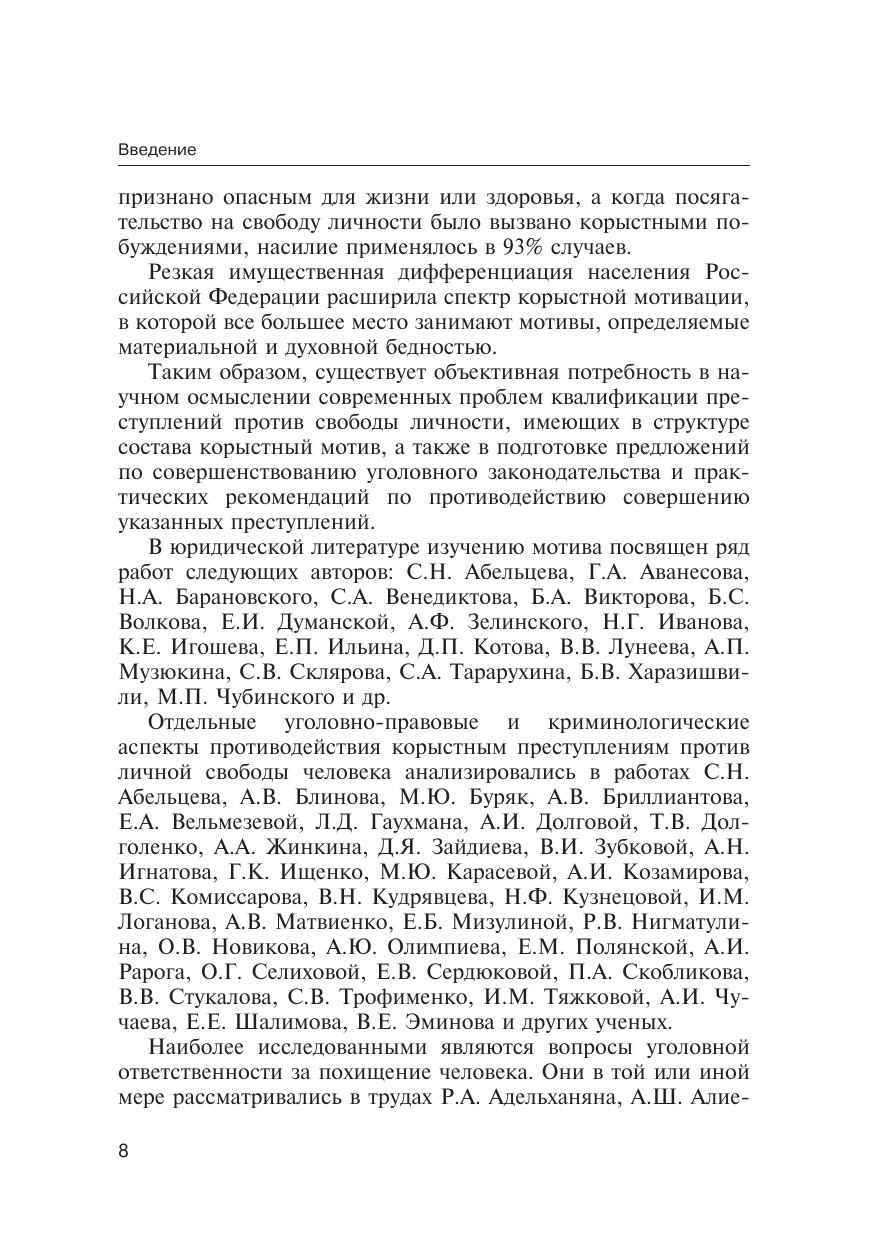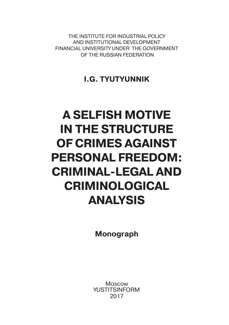 Корыстный мотив в структуре преступлений против свободы личности: уголовно-правовой и криминологический анализ: монография