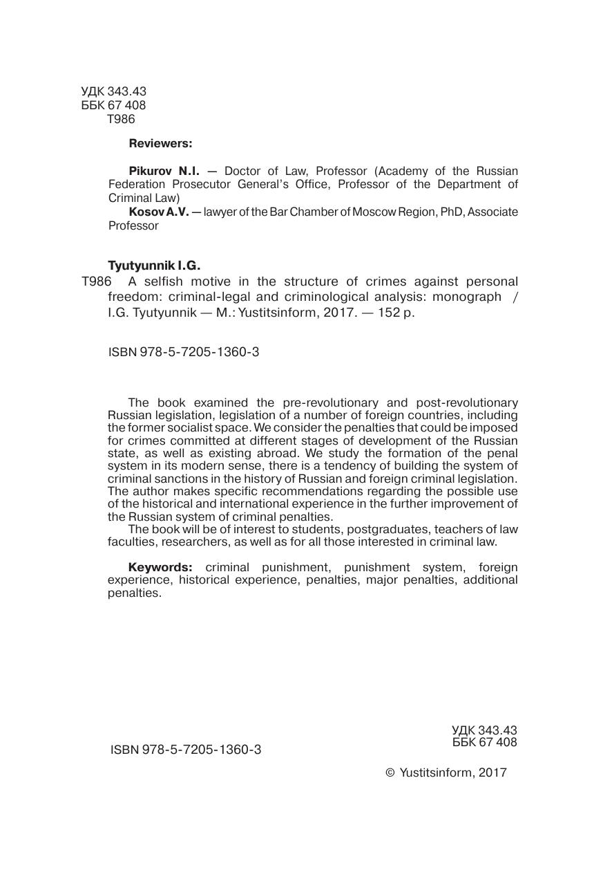 Книга представит интерес для студентов, аспирантов, преподавателей юридических факультетов, научных сотрудников, а также для всех интересующихся уголовным правом.