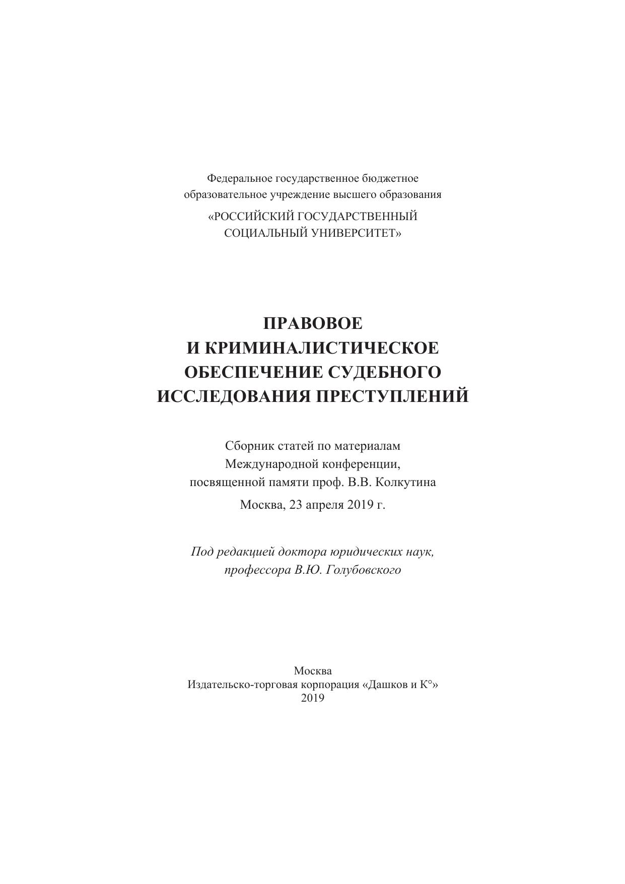 Правовое и криминалистическое обеспечение судебного исследования преступлений: Сборник статей по материалам Международной конференции, посвященной памяти проф. В.В.Колкутина