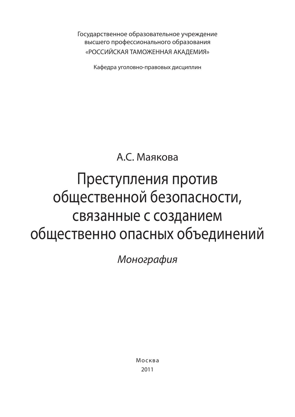 Преступления против общественной безопасности, связанные с созданием общественно опасных объединений: монография