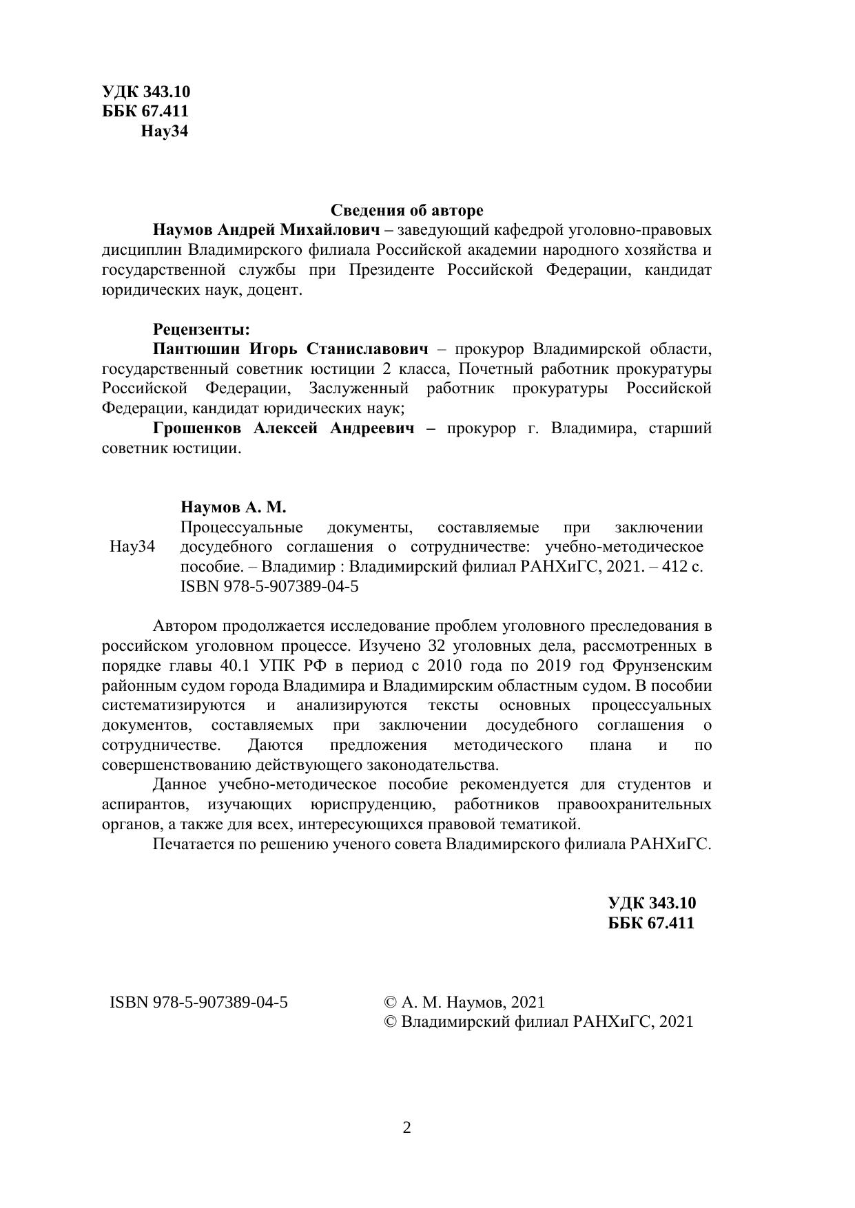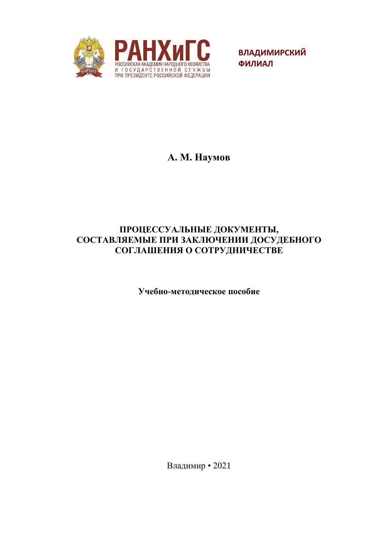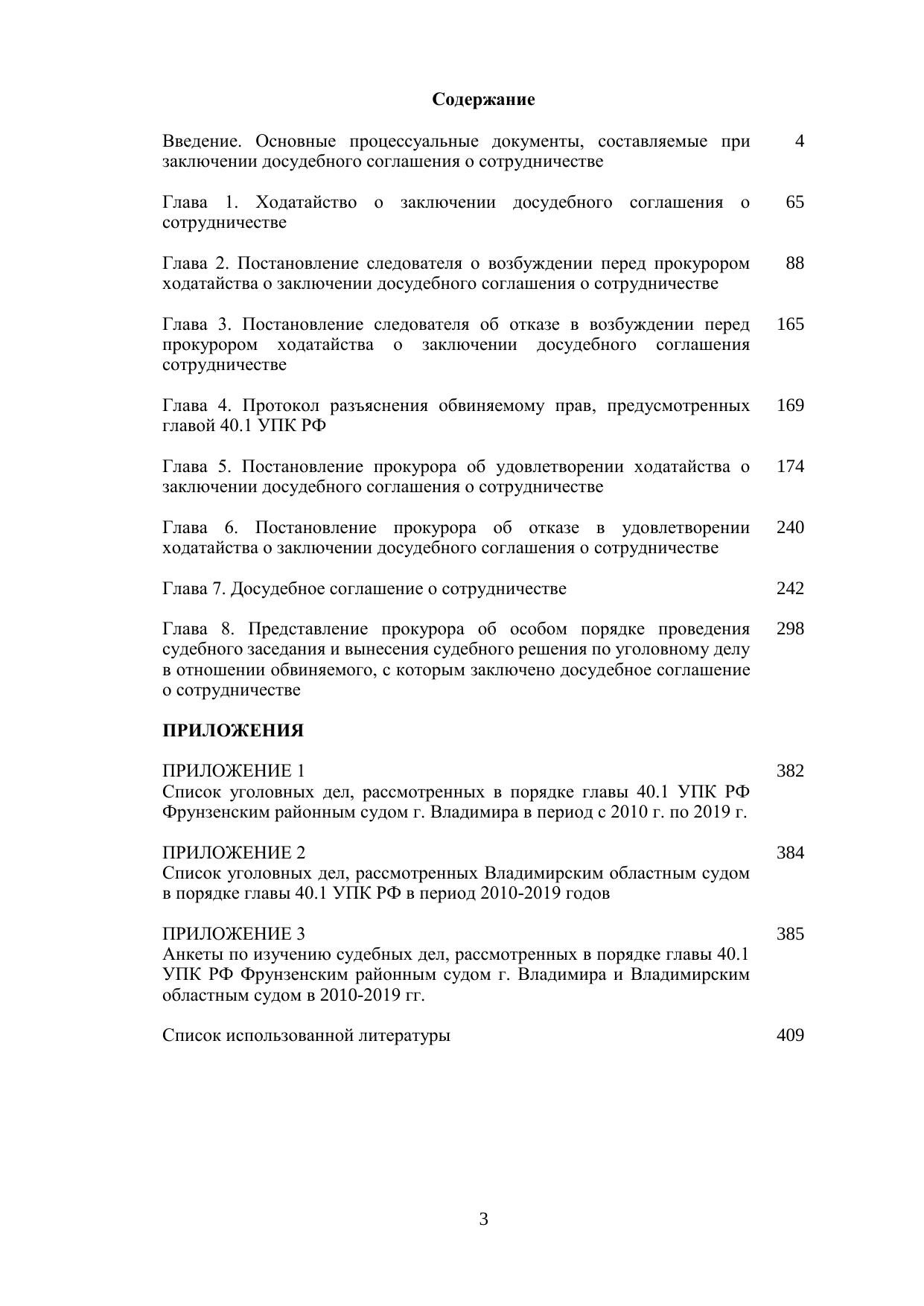 Автором продолжается исследование проблем уголовного преследования в российском уголовном процессе. Изучено 32 уголовных дела, рассмотренных в порядке главы 40.1 УПК РФ в период с 2010 года по 2019 год Фрунзенским районным судом города Владимира и Владимирским областным судом. В пособии систематизируются и анализируются тексты основных процессуальных документов, составляемых при заключении досудебного соглашения о сотрудничестве. Даются предложения методического плана и по совершенствованию действующего законодательства. Данное учебно-методическое пособие рекомендуется для студентов и аспирантов, изучающих юриспруденцию, работников правоохранительных органов, а также для всех, интересующихся правовой тематикой. Печатается по решению ученого совета Владимирского филиала РАНХиГС.