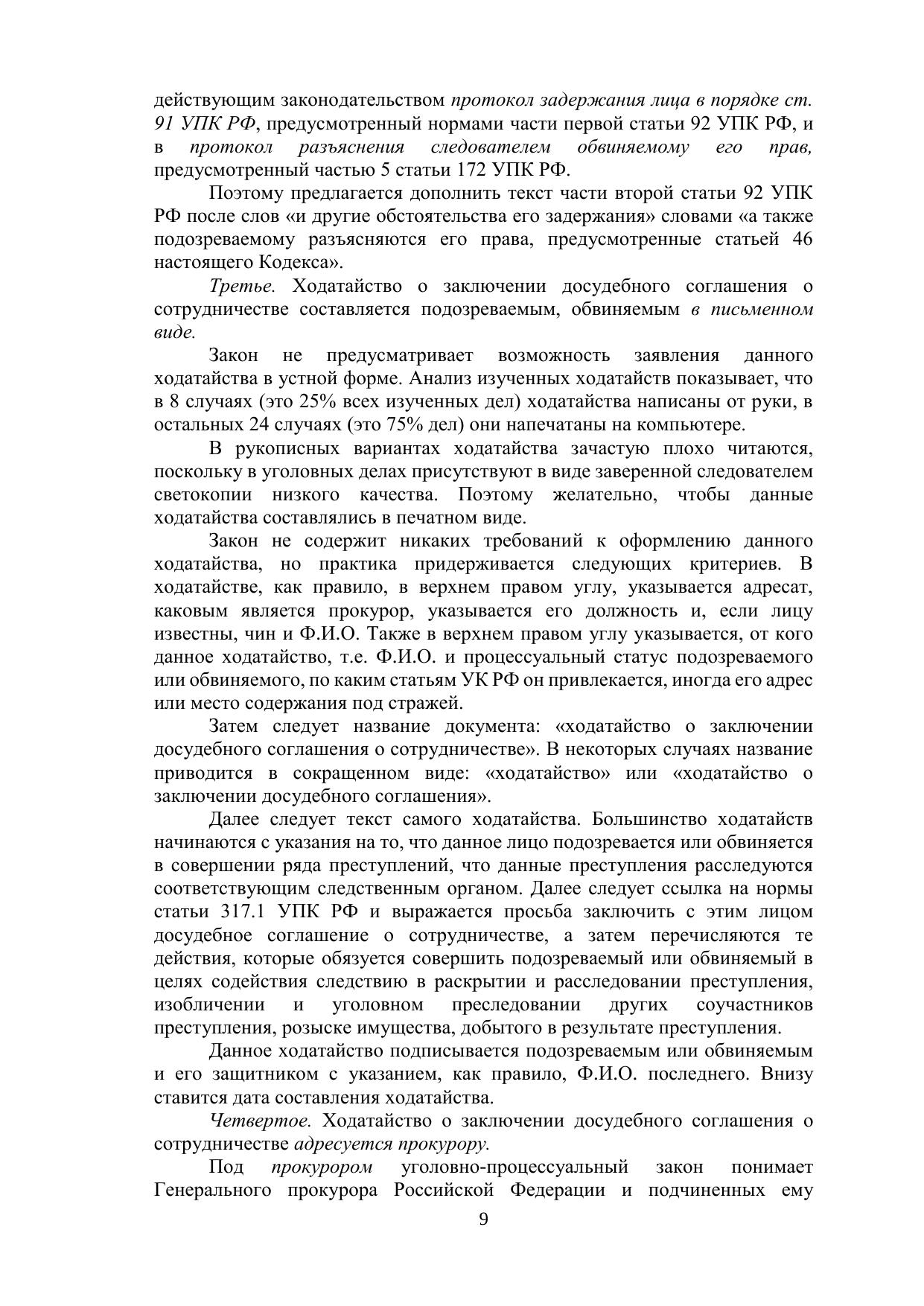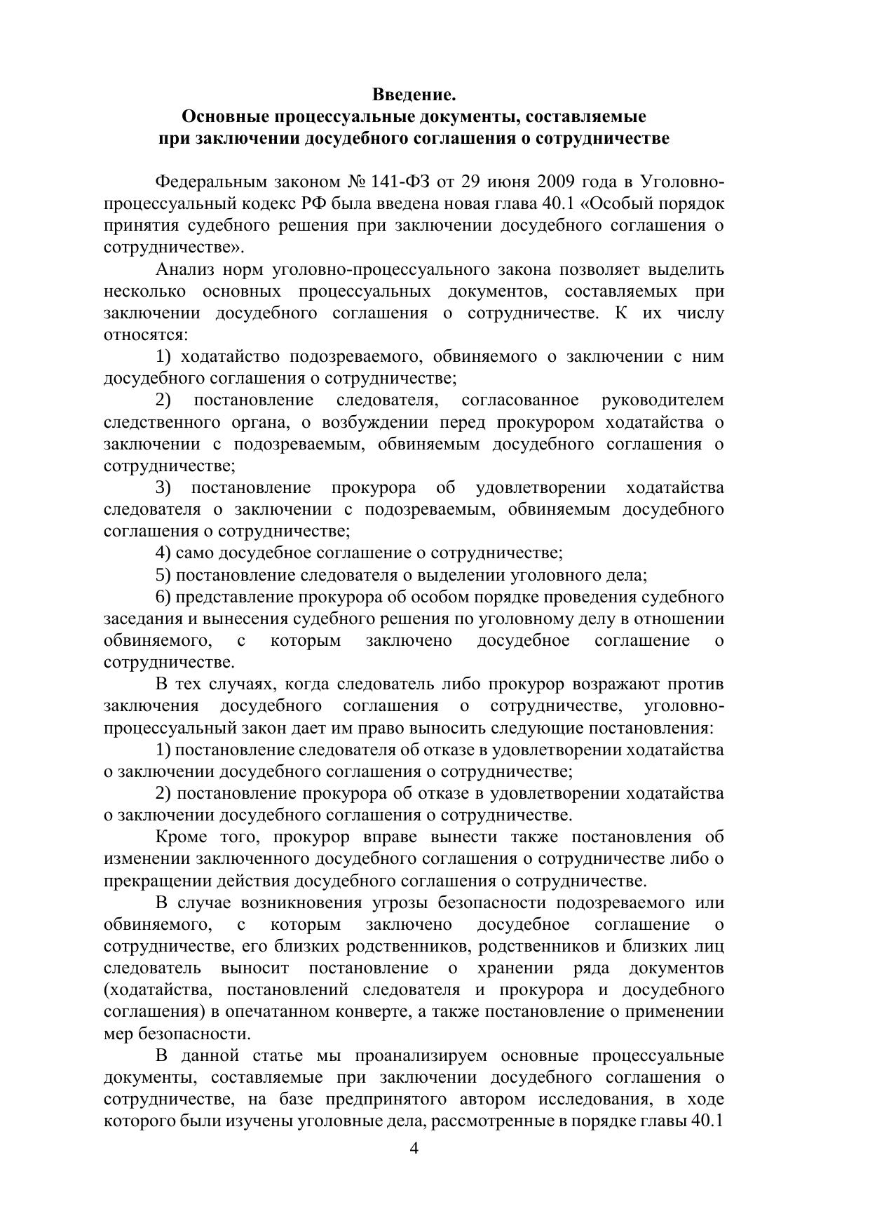 Процессуальные документы, составляемые при заключении досудебного соглашения о сотрудничестве