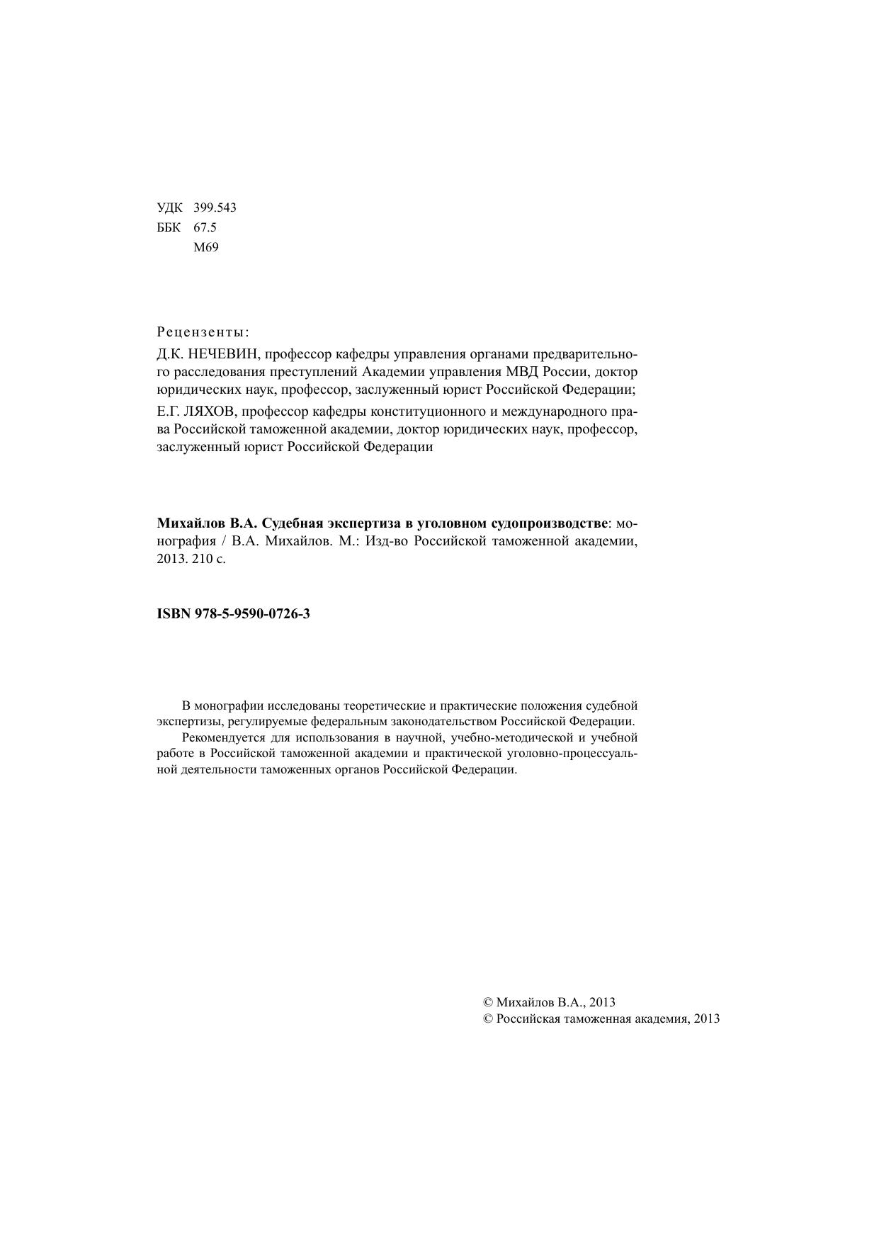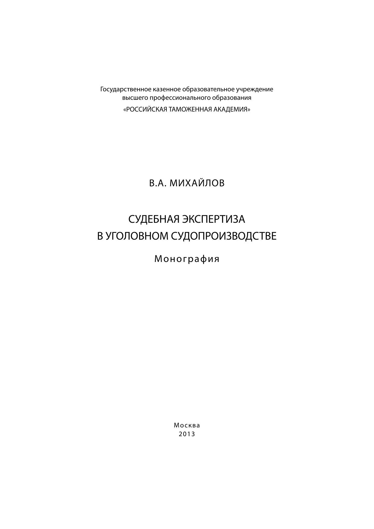 В монографии исследованы теоретические и практические положения судебной экспертизы, регулируемые федеральным законодательством Российской Федерации. Рекомендуется для использования в научной, учебно-методической и учебной работе в Российской таможенной академии и практической уголовно-процессуальной деятельности таможенных органов Российской Федерации.