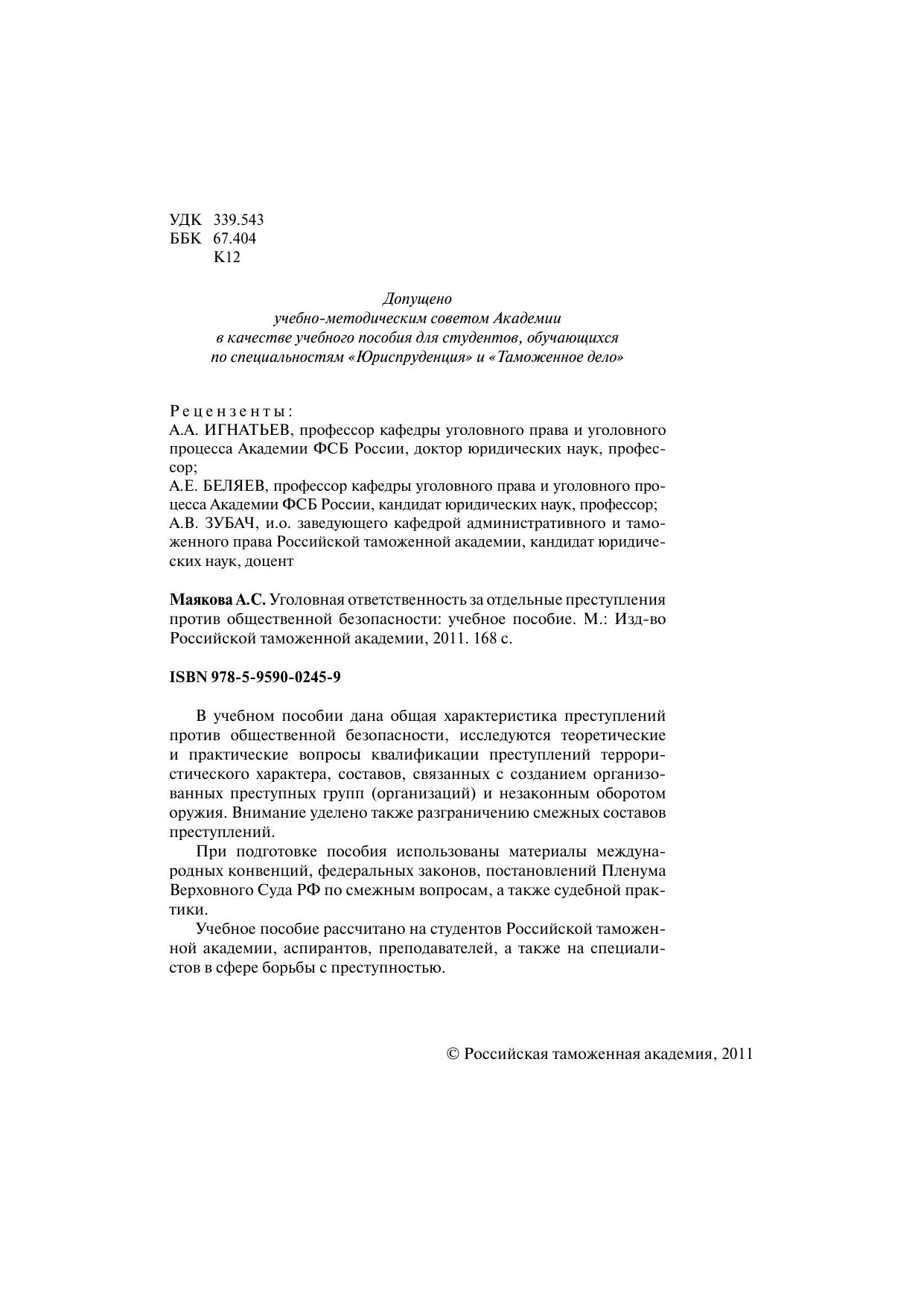 Гриф: Допущено учебно-методическим советом Академии в качестве учебного пособия для студентов, обучающихся по специальностям «Юриспруденция» и «Таможенное дело»