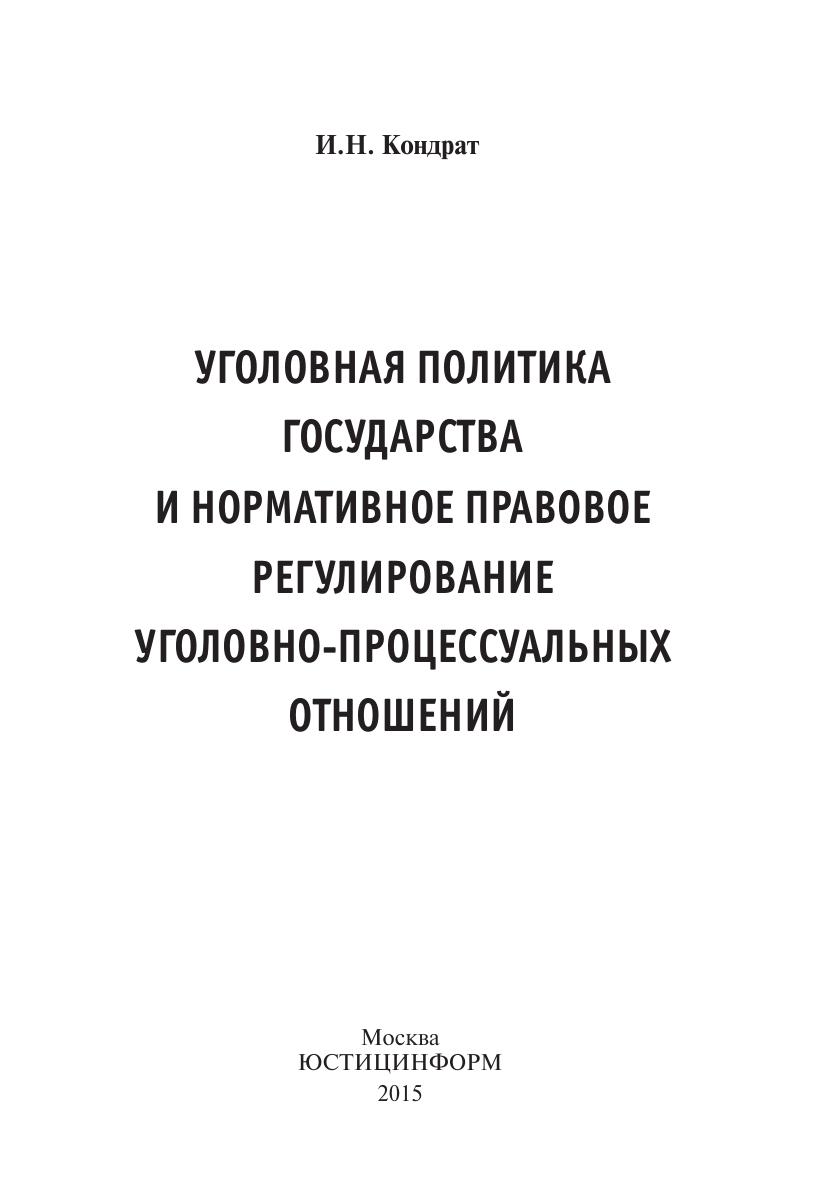 Уголовная политика государства и нормативное правовое регулирование уголовно процессуальных отношений: монография