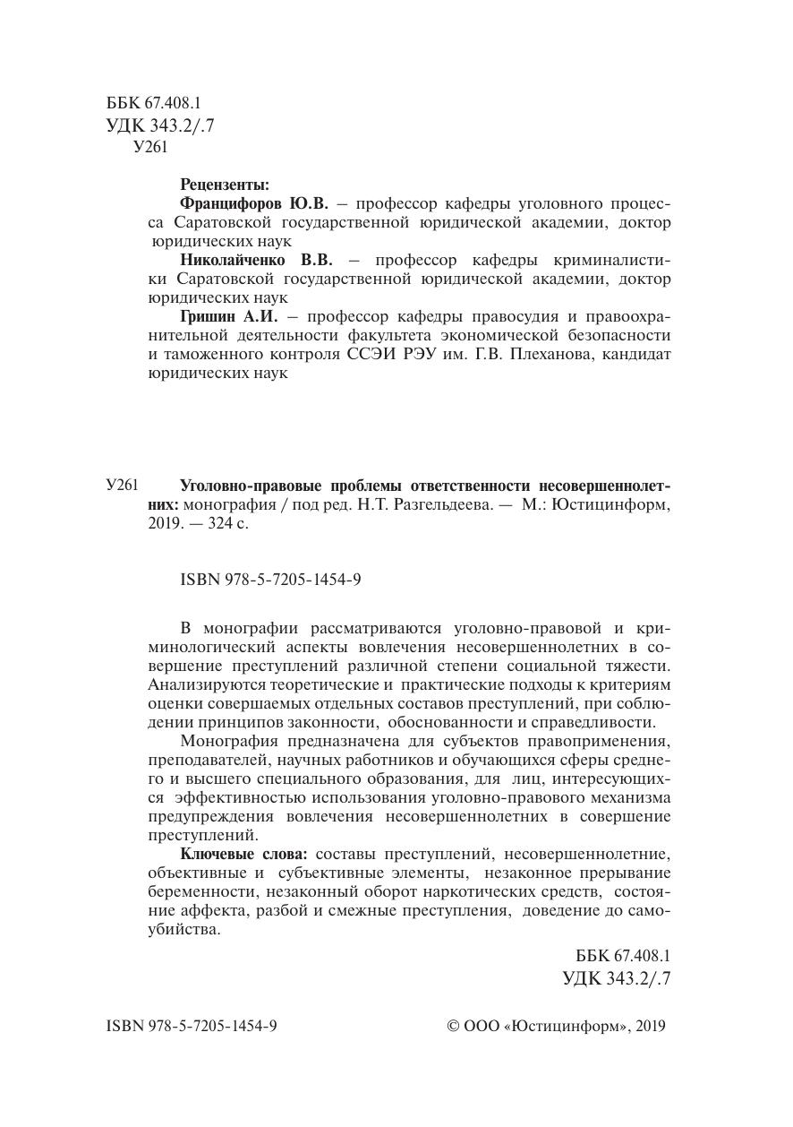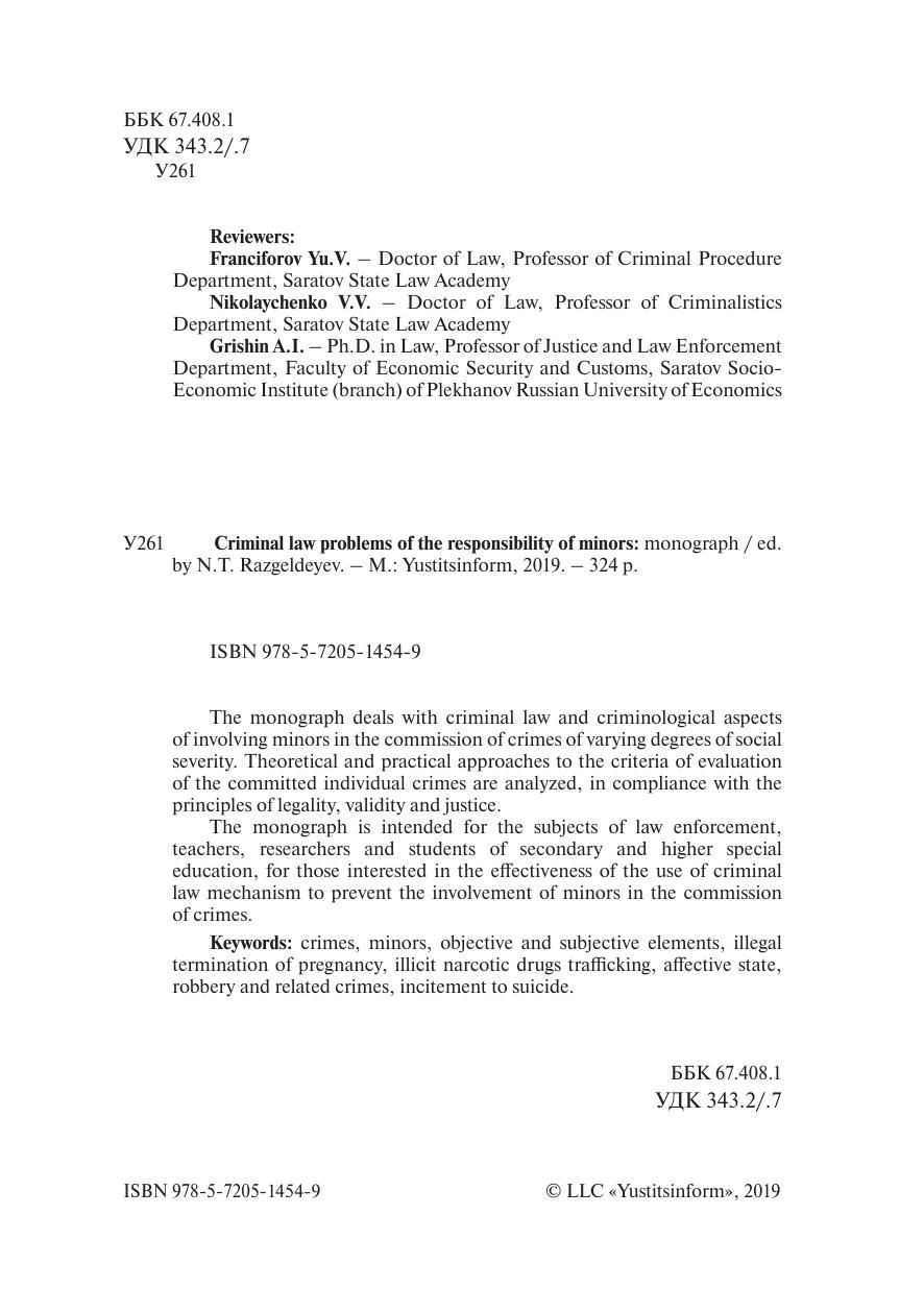 Уголовно-правовые проблемы ответственности несовершеннолетних