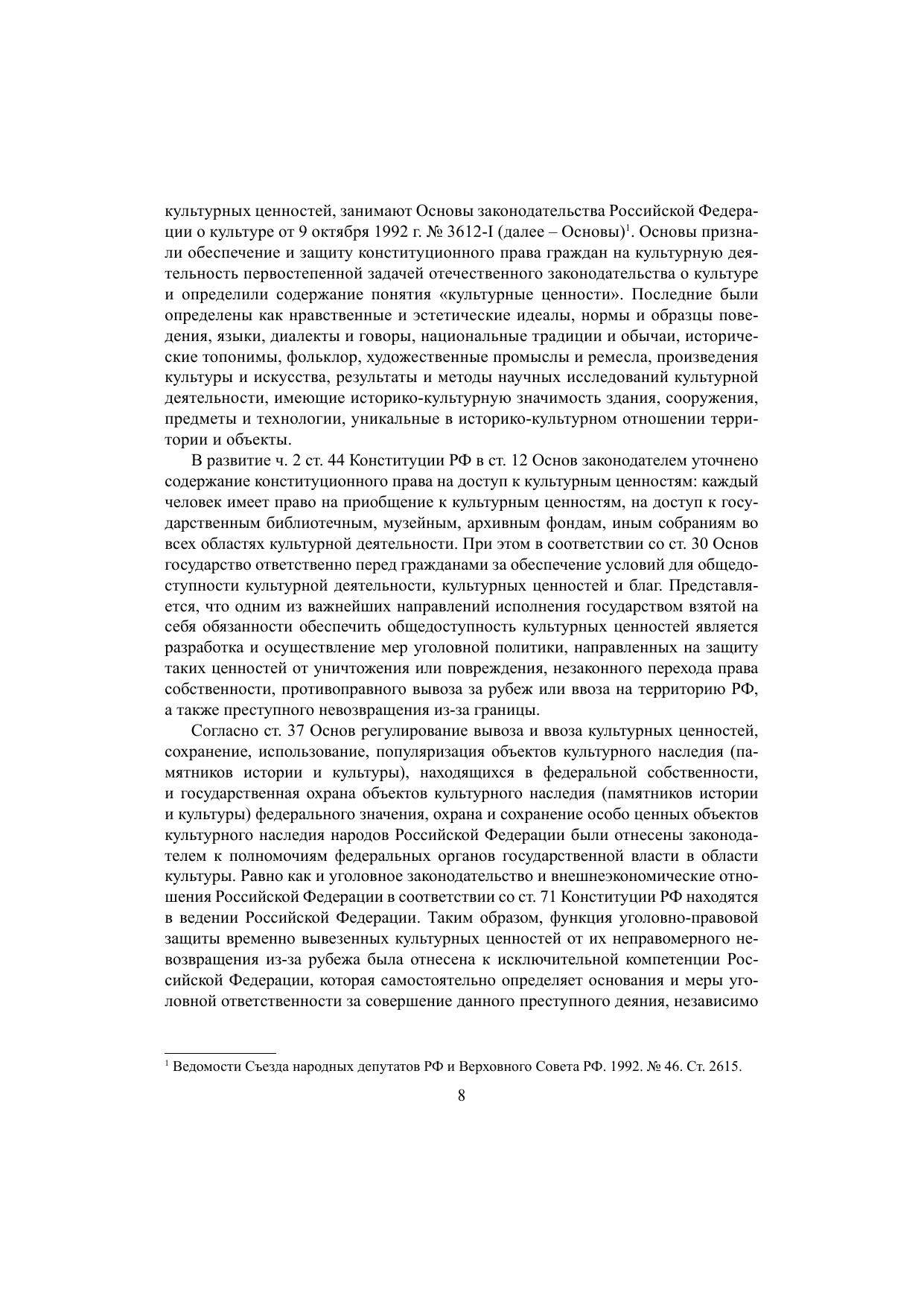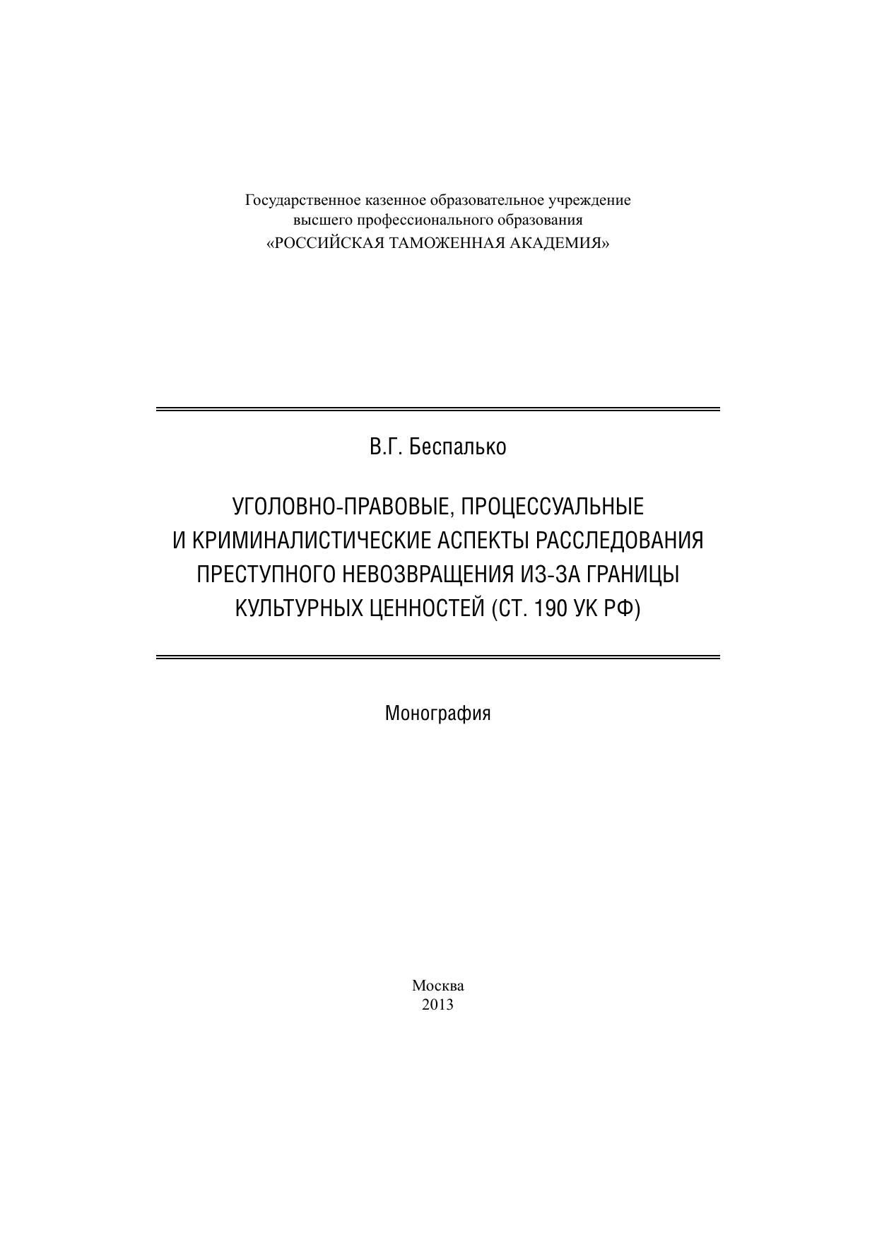 Уголовно-правовые, процессуальные и криминалистические аспекты расследования преступного невозвращения из-за границы культурных ценностей (ст. 190 УК РФ): монография