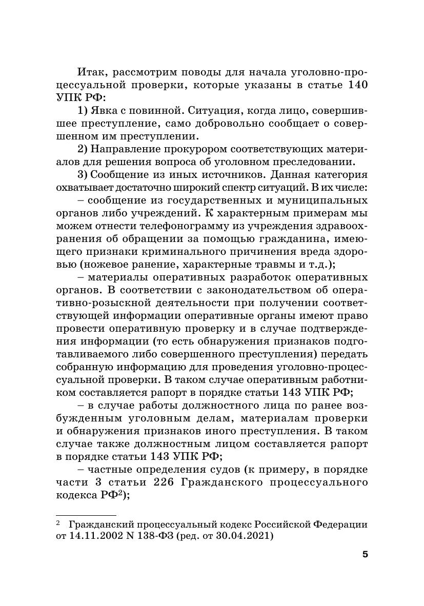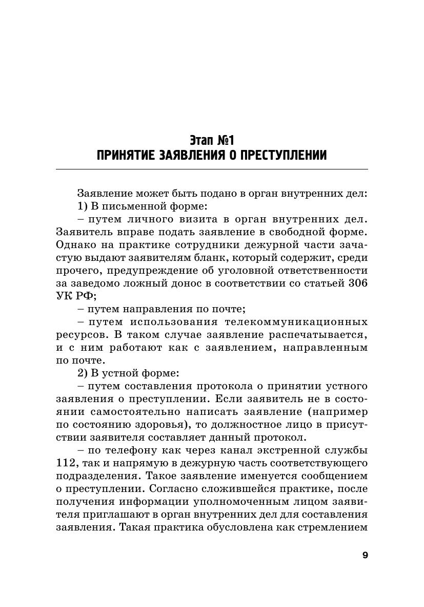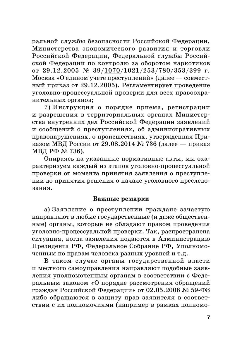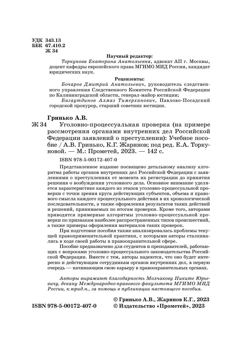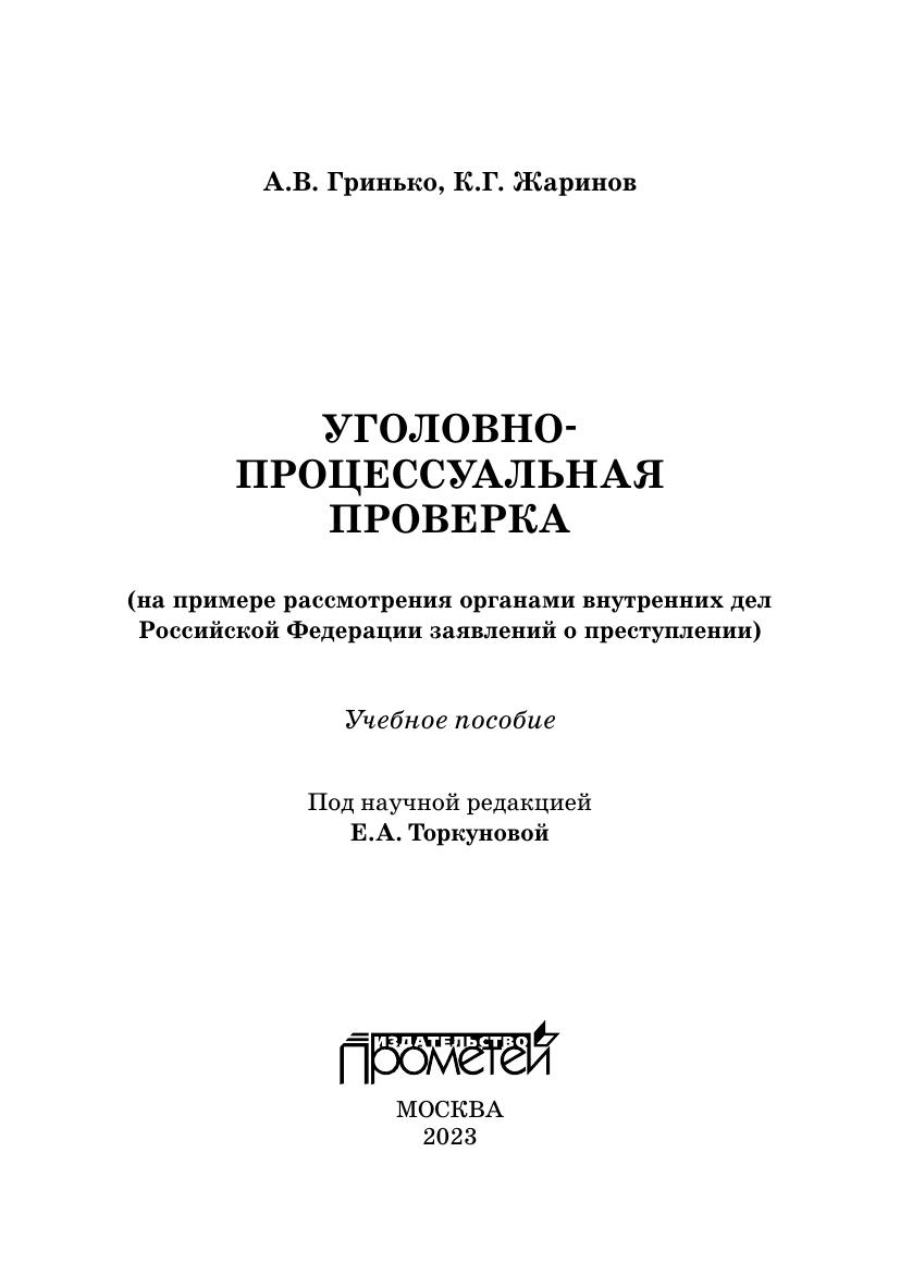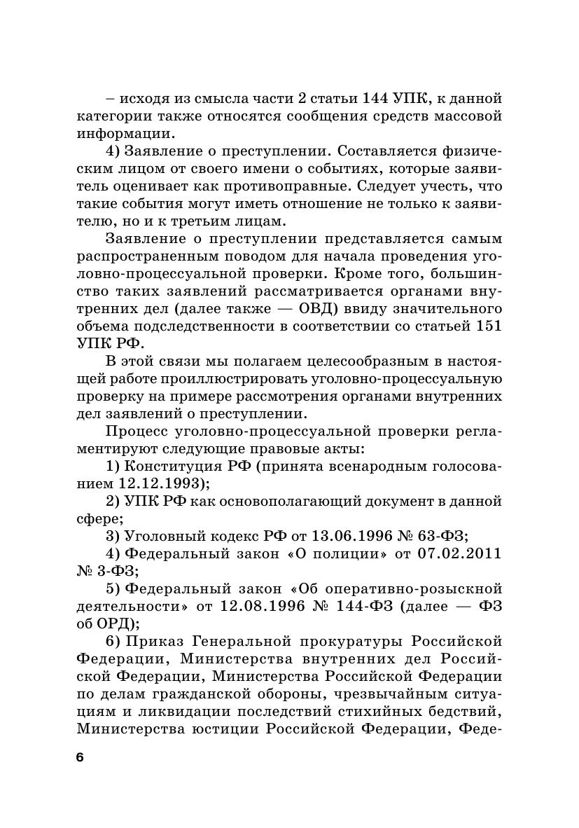 Представленное издание посвящено детальному анализу алгоритма работы органов внутренних дел Российской Федерации с заявлениями о преступлениях от момента их регистрации до принятия решения о возбуждении уголовного дела. Основное внимание уделяется характеристике каждого из этапов уголовно-процессуальной проверки с точки зрения круга действующих субъектов, объема и правового смысла каждого процессуального действия в их хронологической последовательности, а также оформления результатов таких действий и решений, принимаемых по итогам проверки. Кроме того, авторами приводятся примерные алгоритмы уголовно-процессуальной проверки по признакам наиболее распространенных типов происшествий, а также примеры оформления материалов таких проверок. При подготовке пособия также анализировалась проблемы текущей правоприменительной практики, с которыми авторы сталкивались в ходе своей работы в правоохранительной сфере. Пособие предназначено для студентов и преподавателей, работающих с вопросами уголовно-процессуального законодательства Российской Федерации. Вместе с тем, авторы надеются, что оно будет интересно и действующим сотрудникам органов внутренних дел, в первую очередь — начинающим свою карьеру в правоохранительных органах.