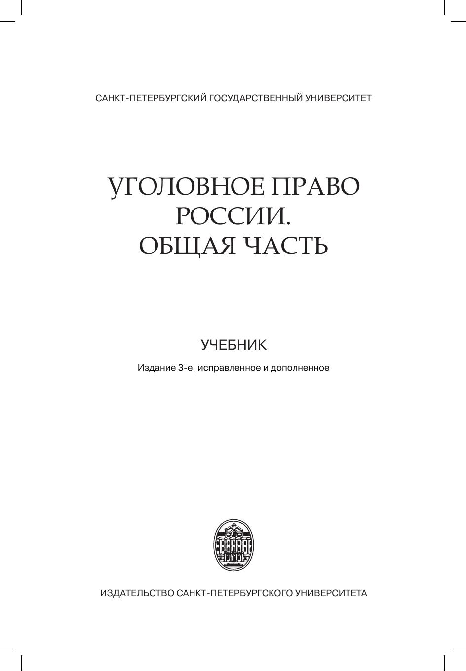 Учебник, написанный коллективом кафедры уголовного права юридического факультета Санкт-Петербургского государственного университета, соответствует Государственному образовательному стандарту высшего профессионального образования, включает все темы, предусмотренные программой курса Общей части уголовного права для подготовки бакалавров. Предназначен для студентов, аспирантов, преподавателей, юристов-практиков и всех тех, кто интересуется современным российским уголовным правом.