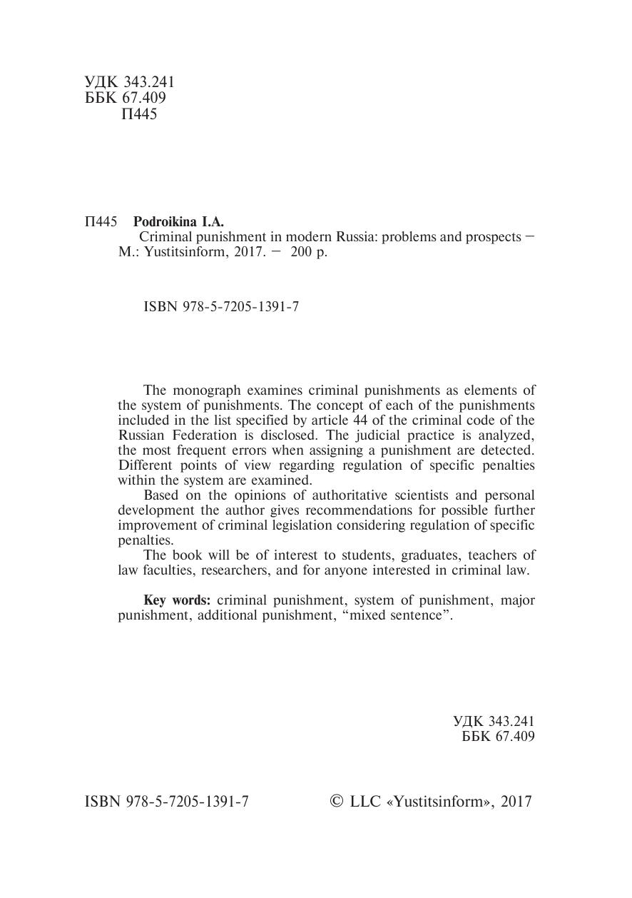 Книга представит интерес для студентов, аспирантов, преподавателей юридических факультетов, научных сотрудников, а также для всех интересующихся уголовным правом.