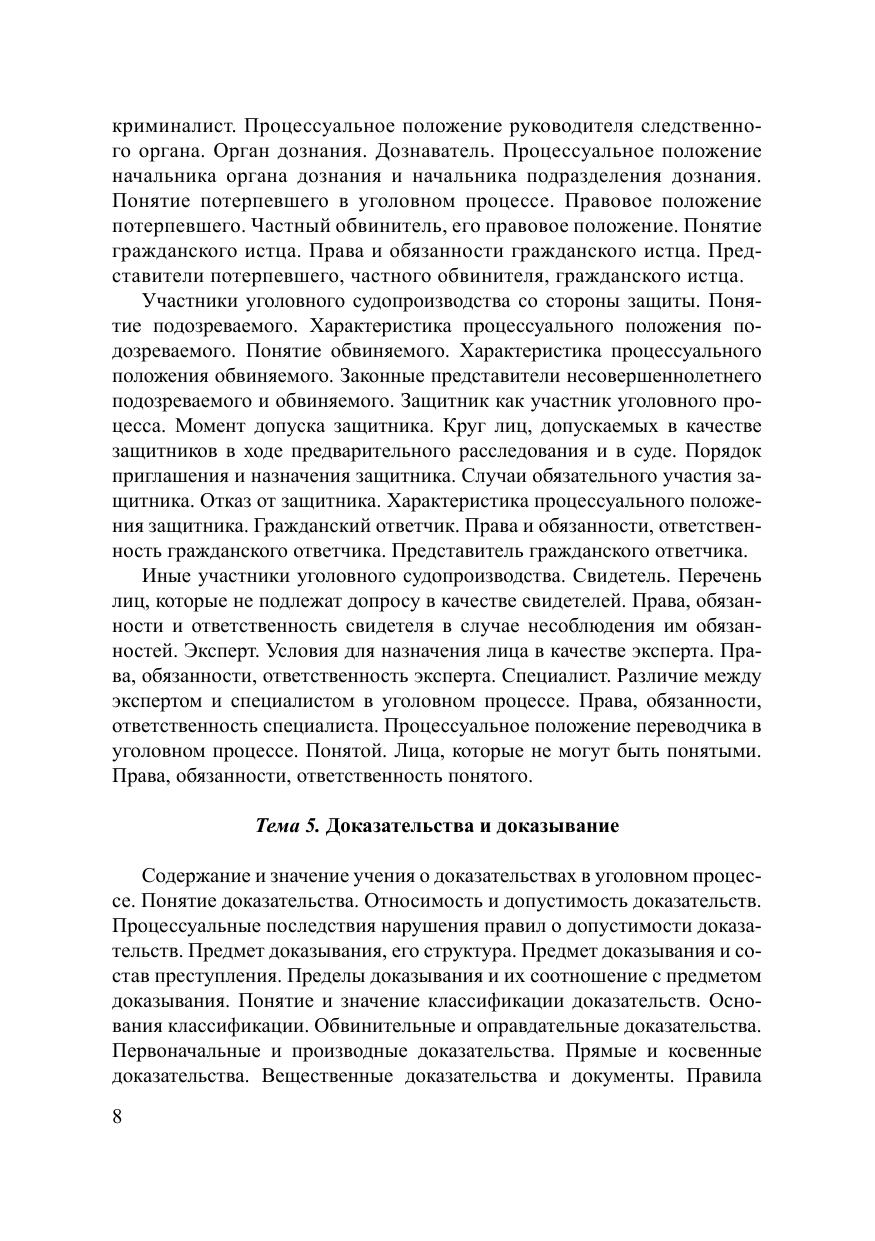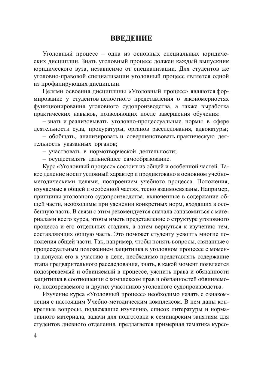 Учебно-методический комплекс включает программу учебного курса «уголовный процесс», список нормативных актов и литературы, рекомендуемых при изучении курса «уголовный процесс», задачи по всем разделам курса «уголовный процесс» к семинарским занятиям, предлагаются также примерная тематика курсовых и дипломных работ, контрольные вопросы для подготовки к зачету (экзамену) и контрольные вопросы для подготовки к государственной аттестации по учебному курсу «уголовный процесс». Для студентов, бакалавров, магистров и преподавателей юридических факультетов.