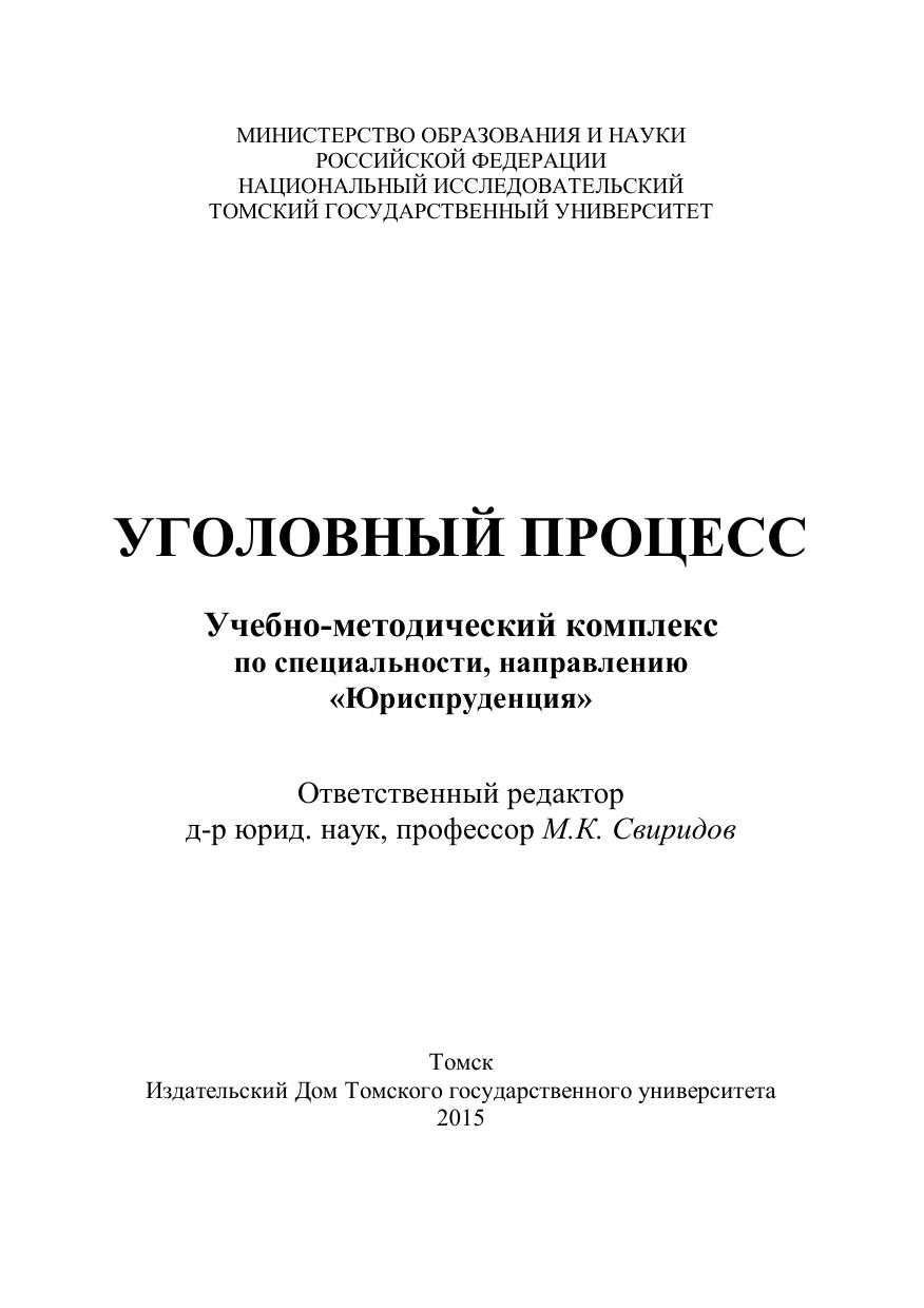 Учебно-методический комплекс включает программу учебного курса «Уголовный процесс», указания по изучению курса, список нормативных актов и литературы, рекомендуемых при изучении курса, задачи к семинарским занятиям по всем разделам курса, схемы ролевых игр. Предлагается также тематика курсовых и выпускных квалификационных работ, контрольные вопросы для подготовки к зачёту, экзамену и к государственной аттестации по учебному курсу «Уголовный процесс». Для студентов, аспирантов и преподавателей юридических факультетов.