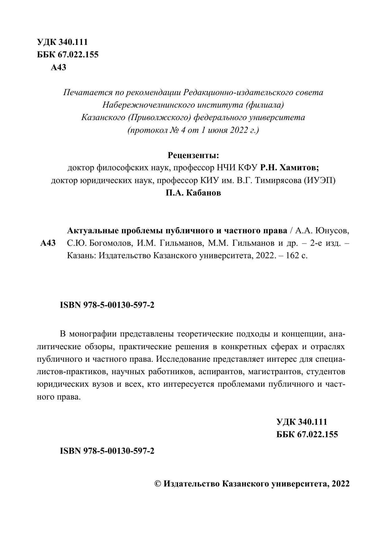 В монографии представлены теоретические подходы и концепции, аналитические обзоры, практические решения в конкретных сферах и отраслях публичного и частного права. Исследование представляет интерес для специалистов практиков, научных работников, аспирантов, магистрантов, студентов юридических вузов и всех, кто интересуется проблемами публичного и частного права.