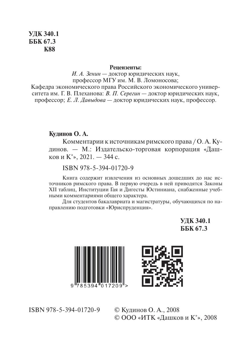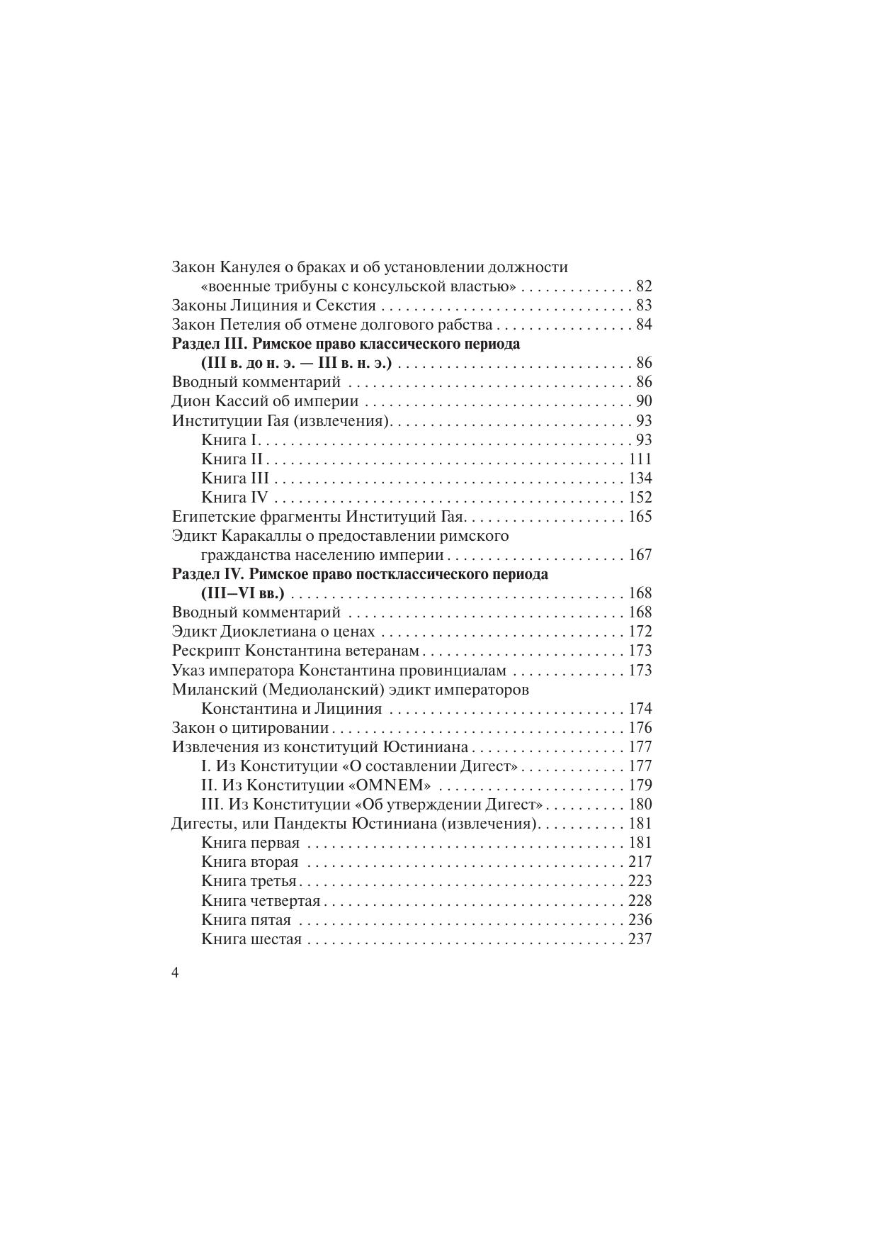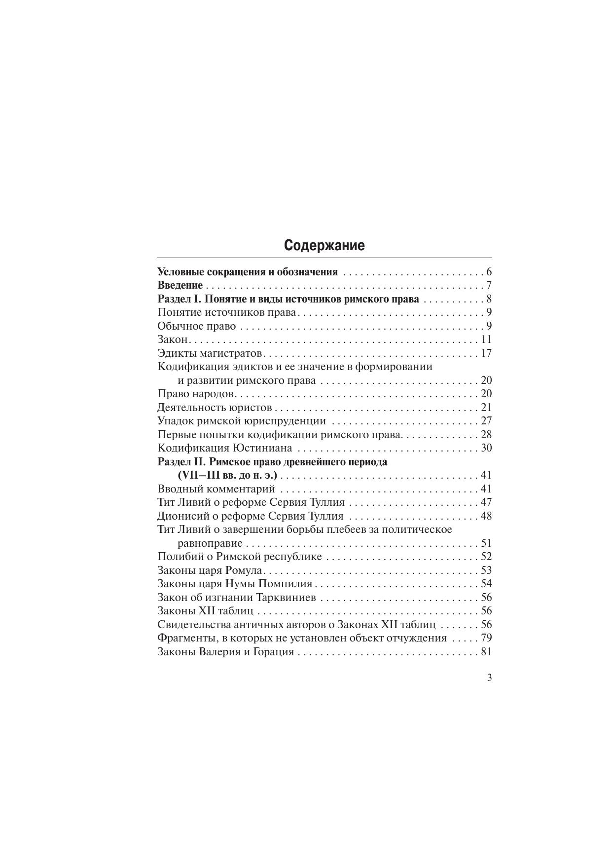 Книга содержит извлечения из основных дошедших до нас источников римского права. В первую очередь в ней приводятся Законы XII таблиц, Институции Гая и Дигесты Юстиниана, снабженные учебными комментариями общего характера.