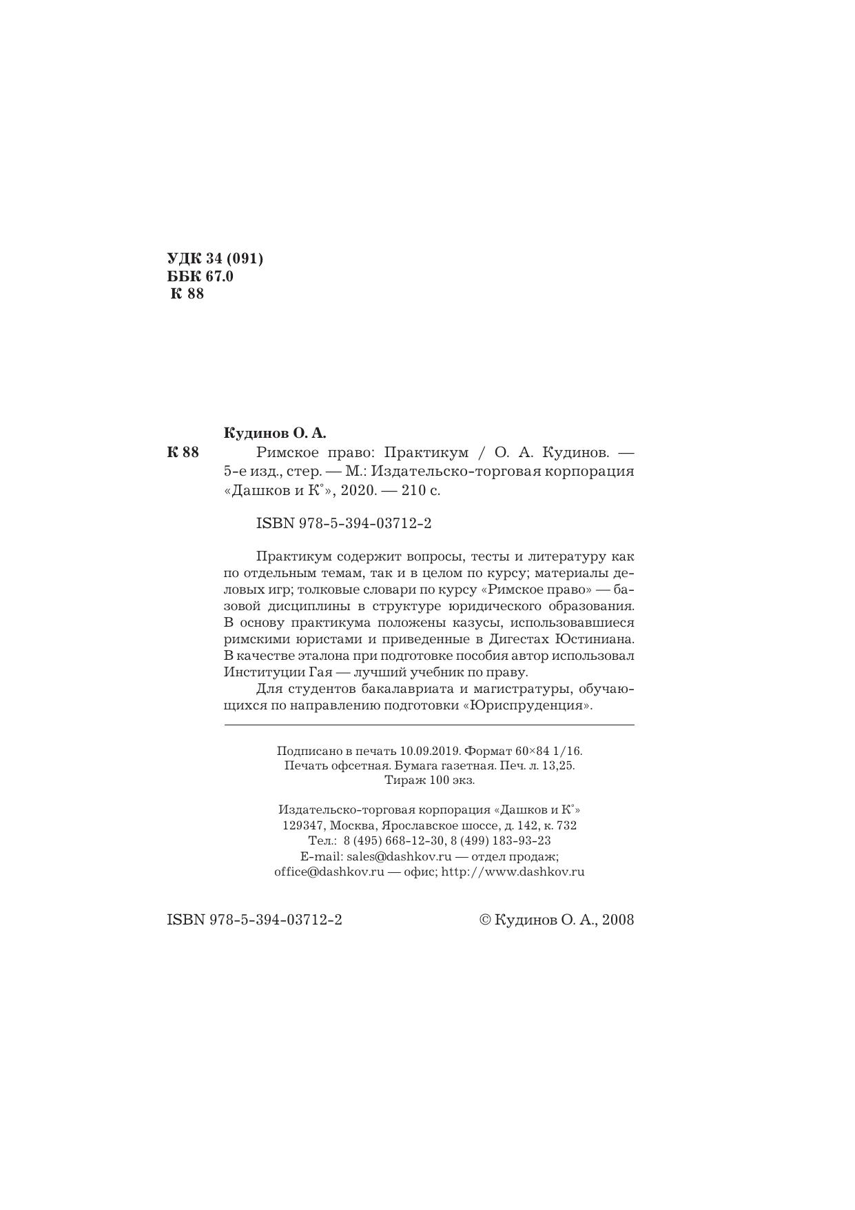 Практикум содержит вопросы, тесты и литературу как по отдельным темам, так и в целом по курсу, материалы деловых игр, толковые словари по курсу "Римское право"- базовой дисциплины в структуре юридического образования. В основу практикума положены казусы, использовавшиеся римскими юристами и приведенные в Дигестах Юстиниана. В качестве эталона при подготовке пособия автор использовал Институции Гая - лучший учебник по праву. Для студентов бакалавриата и магистратуры, обучающихся по направлению подготовки "Юриспруденция".