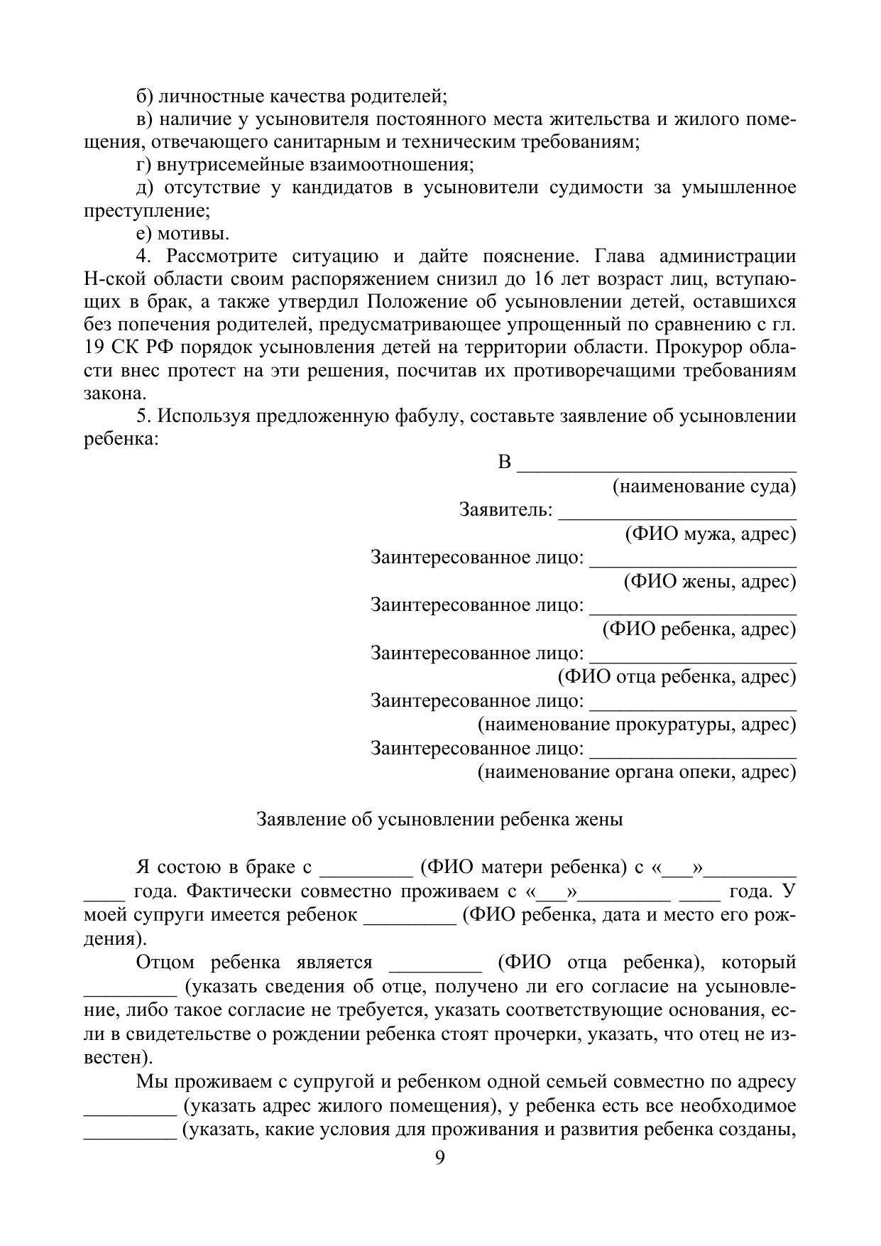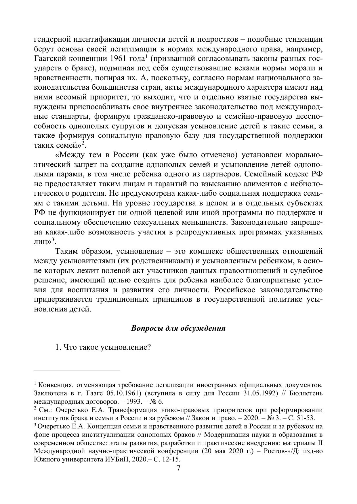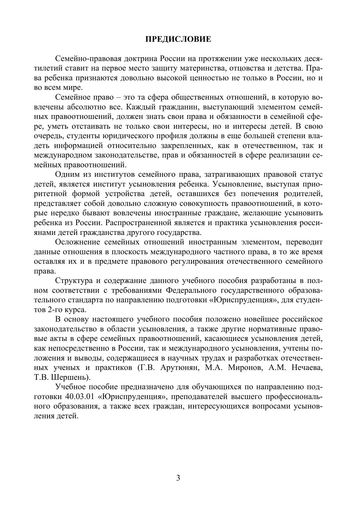 Данное учебное пособие основывается на положениях Семейного кодекса Российской Федерации от 29 декабря 1995 г. № 223-ФЗ и ряда федеральных законов. Издание подготовлено на основе, как российского, так и международного законодательства и представляет собой комплекс учебных материалов для более углубленного изучения дисциплины «Семейное право». Для обеспечения качественного освоения обучающимися названной дисциплины в пособии приводится тематика лекционных и практических занятий (краткий курс лекций, вопросы для обсуждения на занятиях, конкретные правовые ситуации, задания и тесты), методические рекомендации по изучению курса, образцы документов.