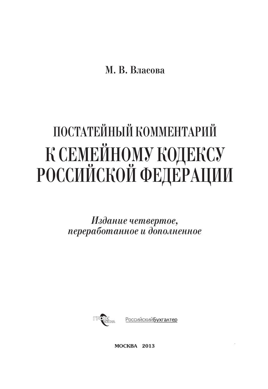 Постатейный комментарий к Семейному кодексу Российской Федерации