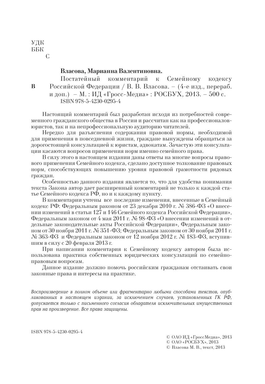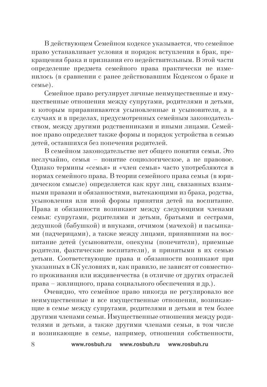 Настоящий комментарий был разработан исходя из потребностей современного гражданского общества в России и рассчитан как на профессионалов-юристов, так и на непрофессиональную аудиторию читателей. Нередко для разъяснения содержания правовой нормы, необходимой для применения в повседневной жизни, граждане вынуждены обращаться за дорогостоящей консультацией к юристам, адвокатам. Зачастую эти консультации касаются вопросов применения норм именно семейного права.В силу этого в настоящем издании даны ответы на многие вопросы правового применения Семейного кодекса, сделано доступное толкование правовых норм, способствующих повышению уровня правовойграмотности рядовых граждан.Особенностью данного издания является то, что для удобства понимания текста Закона автор дает расширенный комментарий не только к каждой статье Семейного кодекса РФ, но и к каждому пункту.