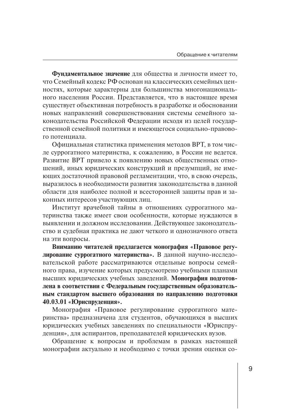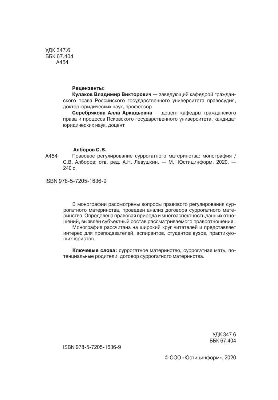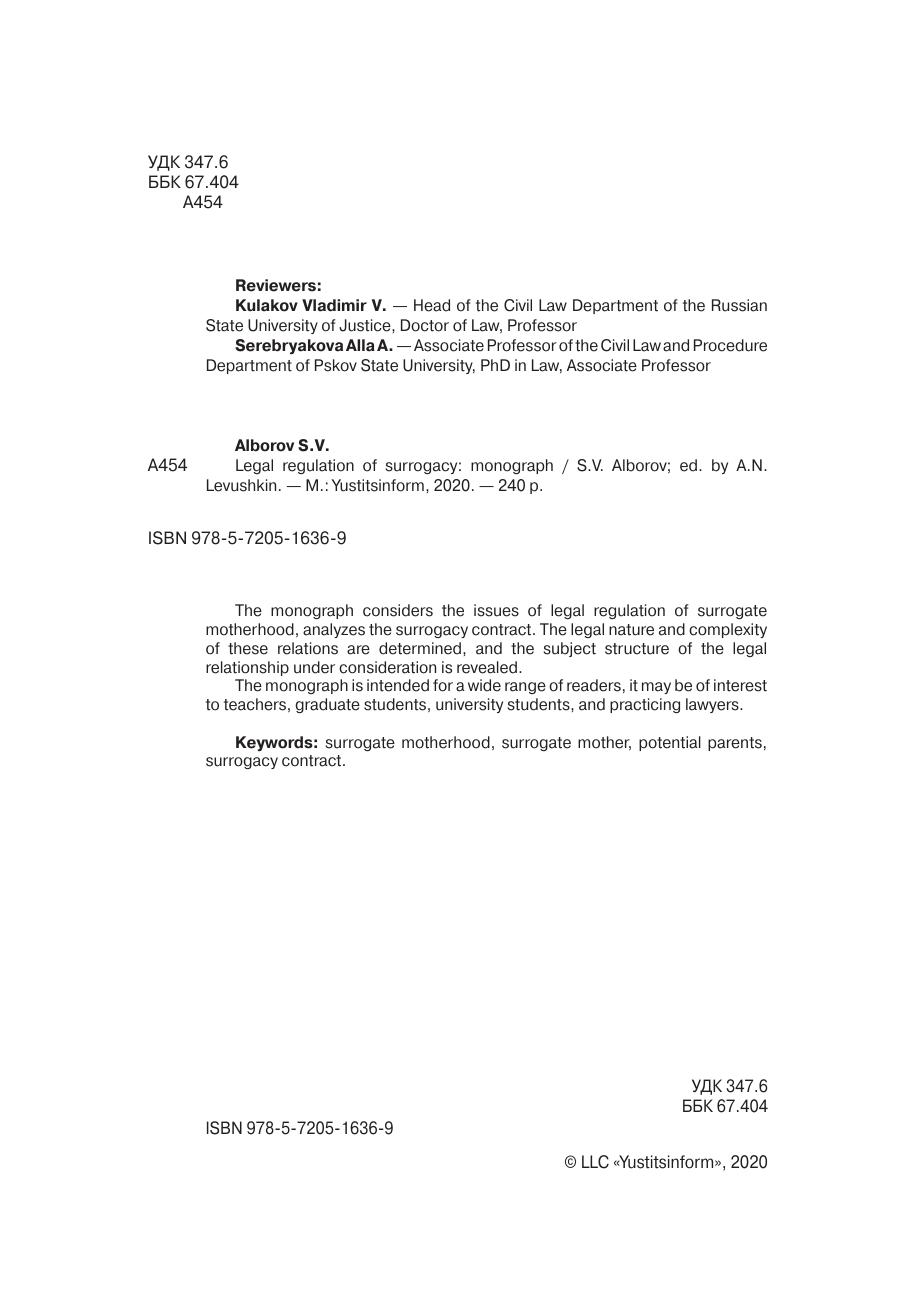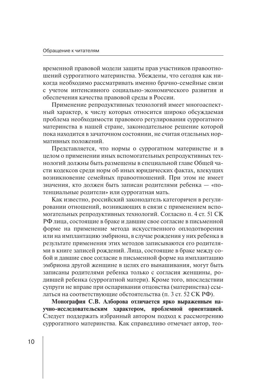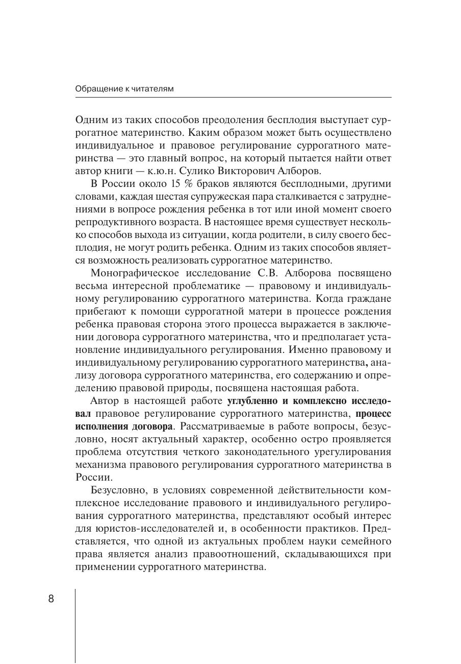 В монографии рассмотрены вопросы правового регулирования суррогатного материнства, проведен анализ договора суррогатного материнства. Определена правовая природа и многоаспектность данных отношений, выявлен субъектный состав рассматриваемого правоотношения. Монография рассчитана на широкий круг читателей и представляет интерес для преподавателей, аспирантов, студентов вузов, практикующих юристов.